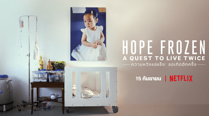 ภาพยนตร์สารคดีไทยระดับรางวัลจากเวทีนานาชาติ Hope Frozen: A Quest To Live Twice หรือในชื่อภาษาไทยว่า ‘ความหวังแช่แข็ง: ขอเกิดอีกครั้ง’ จากผู้กำกับและนักข่าว ไพลิน วีเด็ล ภาพยนตร์สารคดีนี้จะนำผู้ชมเข้าสู่เรื่องราวการเดินทางที่บีบหัวใจของครอบครัวไทยชาวพุทธ ที่ตัดสินใจพาน้องไอนส์ ลูกสาววัยสองขวบที่เสียชีวิตด้วยมะเร็งสมอง เข้าสู่กระบวนการไครออนิกส์ หรือการเก็บรักษาด้วยการแช่แข็ง ซึ่งทำให้น้องไอนส์กลายเป็นบุคคลอายุน้อยที่สุดในโลกที่อยู่ในสภาพแช่แข็งด้วยวิธีไครออนิกส์นี้ พ่อของน้องไอนส์เป็นนักวิทยาศาสตร์ด้านเลเซอร์ ที่หวังว่าสักวันน้องไอนส์จะได้กลับมามีชีวิตอีกครั้งในร่างใหม่ โดยเขายังปลูกฝังความปรารถนานี้ให้กับแมทริกซ์ ลูกชายคนเก่งวัย 15 ปี ที่อยากมีส่วนร่วมในการคืนชีวิตให้กับน้องสาวของเขา แต่สิ่งที่แมทริกซ์ได้เรียนรู้เกี่ยวกับภารกิจนี้ อาจทำให้ความหวังและศรัทธาในวิทยาศาสตร์ของครอบครัวต้องสั่นคลอน