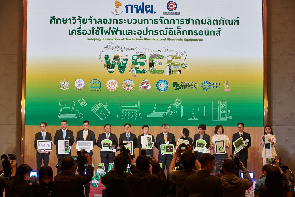 สฟอ. ร่วมกับ กฟผ. ผนึกกำลังภาครัฐ เอกชน สถาบันการศึกษา เปิดตัวโครงการ “ศึกษาวิจัยจำลองกระบวนการจัดการซากผลิตภัณฑ์เครื่องใช้ไฟฟ้าและอุปกรณ์อิเล็กทรอนิกส์” เพื่อผลักดันให้เกิดระบบการจัดการซากผลิตภัณฑ์เครื่องใช้ไฟฟ้าและอุปกรณ์อิเล็กทรอนิกส์ หรือขยะอิเล็กทรอนิกส์ ภายใต้แนวคิดเศรษฐกิจหมุนเวียน มุ่งให้เกิดการนำกลับมาใช้ใหม่ อย่างเป็นรูปธรรม ยั่งยืน และเป็นมิตรต่อสิ่งแวดล้อม ตามร่าง พ.ร.บ.ฯ ของกรมควบคุมมลพิษ