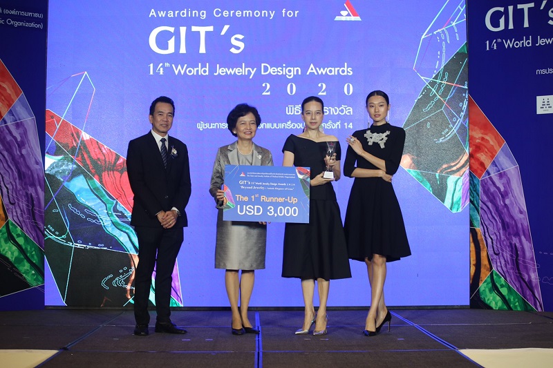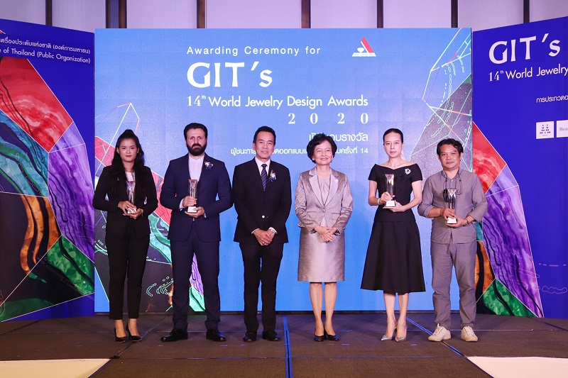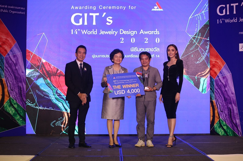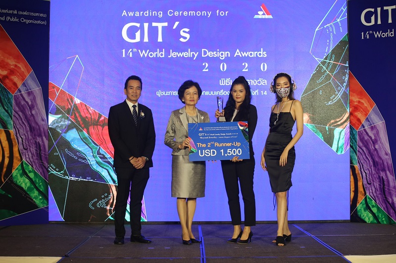 สถาบันวิจัยและพัฒนาอัญมณีและเครื่องประดับ (องค์การมหาชน) หรือ จีไอที จัดพิธีมอบรางวัลแก่ผู้ชนะโครงการประกวดออกแบบเครื่องประดับ ครั้งที่ 14 (GIT’s 14th World Jewelry Design Award 2020) โดยผู้ชนะเลิศ ได้รับเงินรางวัลมูลค่า 4,000 เหรียญสหรัฐ พร้อมโล่รางวัลพระราชทานจาก สมเด็จพระเจ้าน้องนางเธอ เจ้าฟ้าจุฬาภรณวลัยลักษณ์ อัครราชกุมารี กรมพระศรีสวางควัฒน วรขัตติยราชนารี โดยมี นางนันทวัลย์ ศกุนตนาค ประธานกรรมการสถาบันวิจัยและพัฒนาอญณีและเครื่องประดับแห่งชาติ เป็นประธานในพิธี ณ ห้อง รีเจนซี่บอลรูม 2 โรงแรมไฮแอท รีเจนซี่ กรุงเทพฯ สุขุมวิท