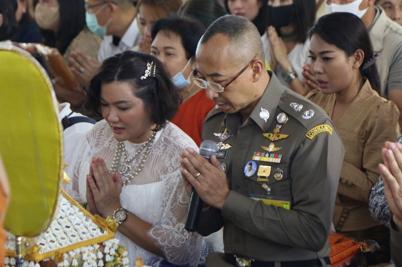 โดยมีข้าราชการตำรวจชั้นผู้ใหญ่พร้อมครอบครัวและคณะศิษยานุศิษย์เข้าร่วมในพิธีโดยพร้อมเพรียงกัน