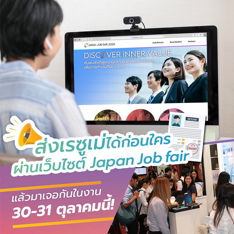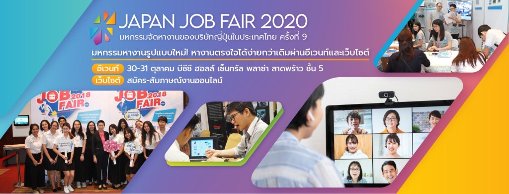 หอการค้าญี่ปุ่น-กรุงเทพฯ (JCC) จัดงานมหกรรมจัดหางานของบริษัทญี่ปุ่นในประเทศไทย ครั้งที่ 9 หรือ JAPAN JOB FAIR 2020 เปิดโอกาสให้ผู้สมัครงานพบกับตำแหน่งงานกว่า 100 ตำแหน่งจากบริษัทญี่ปุ่นซึ่งตั้งอยู่ในประเทศไทย ด้วยการหางานรูปแบบใหม่ Hybrid ออฟไลน์และออนไลน์ผ่านโปรแกรม ZOOM ง่าย สะดวก และรวดเร็ว