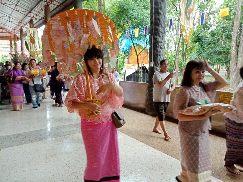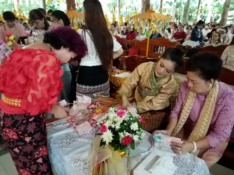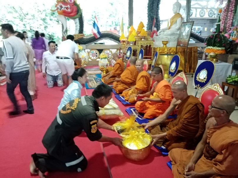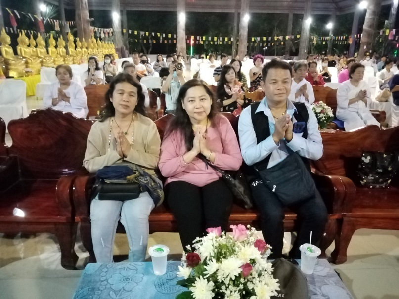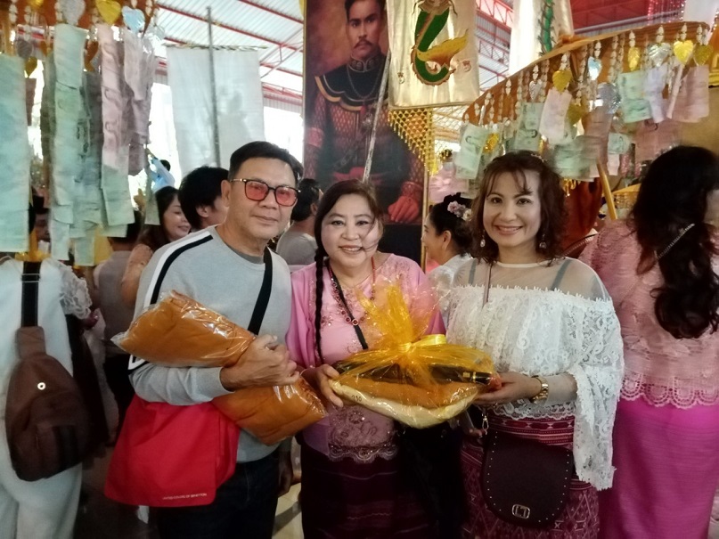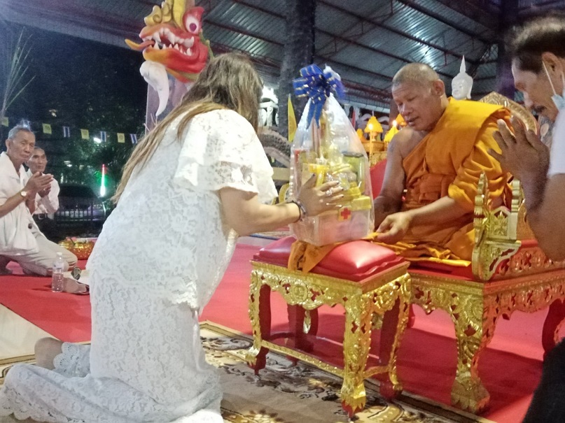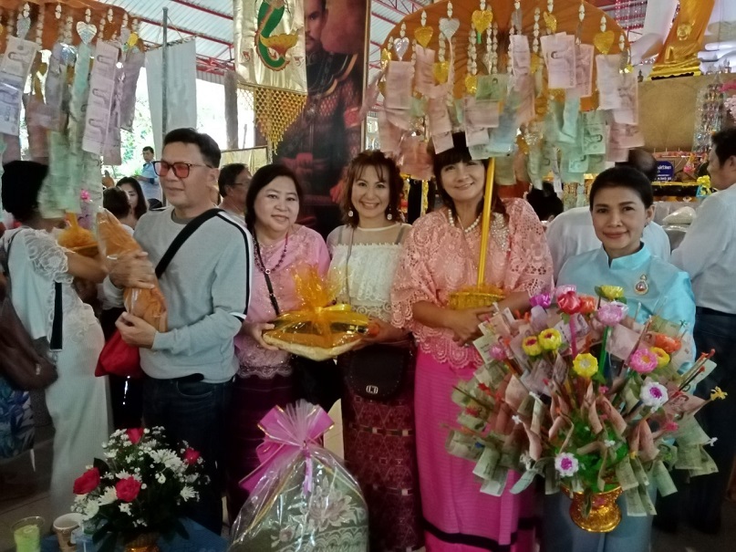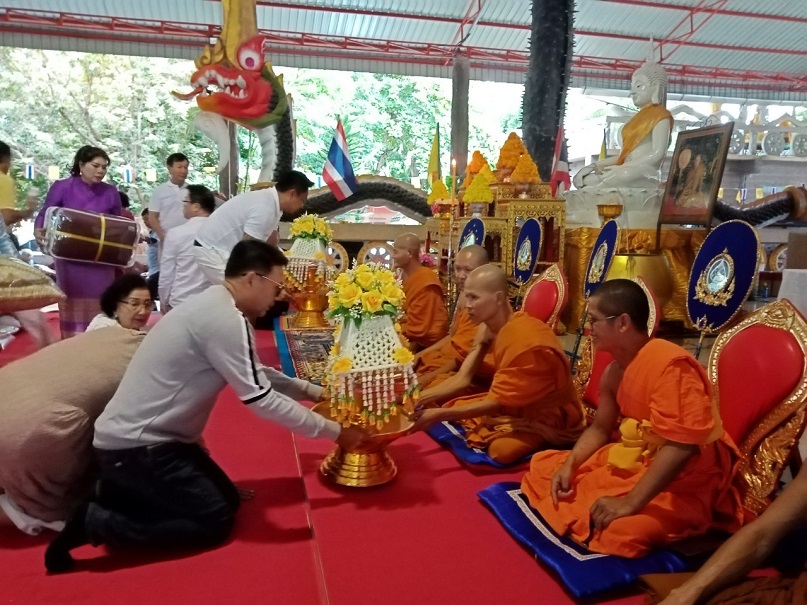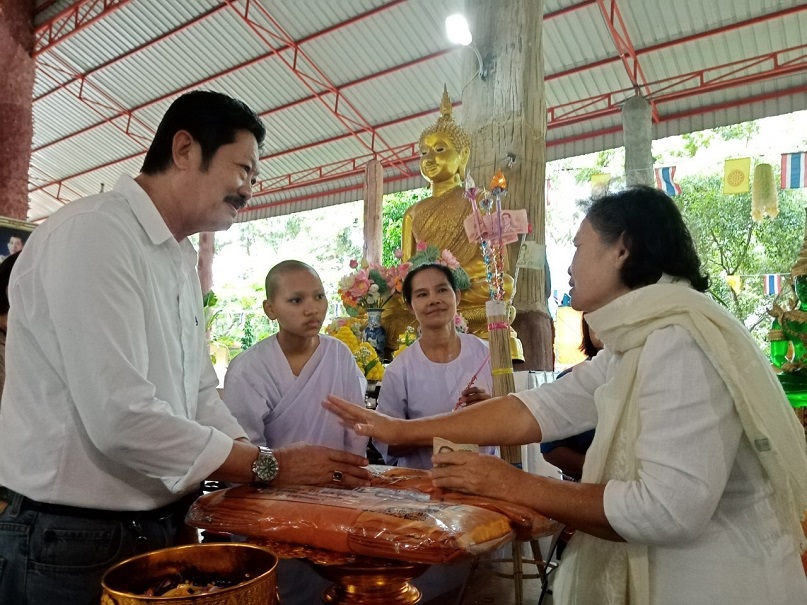 คุณแม่บุญนาค ราหุลทัต เป็นประธานในการจัดตั้งองค์กฐิน โดยมี คุณอำไพ ราหุลทัต บุตรสาวเป็นรองประธาน ได้นำศรัทธาสาธุชนผู้ใจบุญ ศิลปินดาราหลายคนจากกรุงเทพมหานคร ไม่ว่าจะเป็นไกรสร แสงอนันต์ อดีตสามี พุ่มพวง ดวงจันทร์ แนนซี่ ทรัพย์สมัย และเพื่อนพ้องน้องพี่ เดินทางมาร่วมทำบุญกฐินในครั้งนี้อย่างมากมาย และยังมีโอกาสไปเยี่ยมชมปราสาทสด็กก็อกธม ที่อำเภอตาพระยาติดชายแดนกัมพูชา การมาทำบุญทิดกฐินครั้งนี้ มีสายฝนโปรยปรายลงมาอย่างหนักประพรมน้ำมนต์จากฟากฟ้า