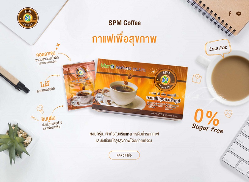 ““บริษัท ไมโครอินโนเวต จำกัด เป็นบริษัทร่วมทุนกับ สำนักงานพัฒนาวิทยาศาสตร์และเทคโนโลยีแห่งชาติ (สวทช.) เป็นผู้ผลิตกาแฟปรุงสำเร็จรูป SPM Coffee กาแฟเพื่อสุขภาพ ไม่มีน้ำตาล ไม่มีคอเลสเตอรอล อุดมไปด้วยสารสกัดเพื่อสุขภาพนานาชนิด เพื่อสุขภาพที่ดีของคอกาแฟยุคใหม่”