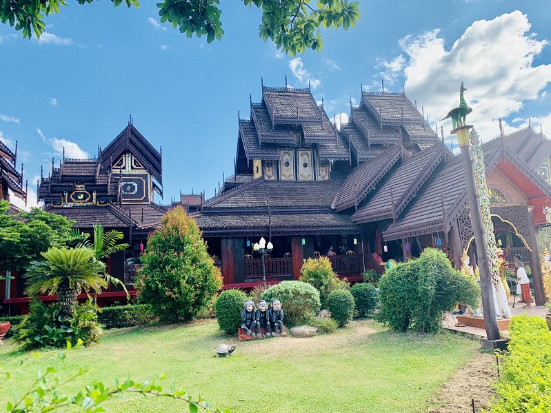 เราเริ่มต้นที่สนามบินเชียงรายขึ้นรถตู้เดินทางไปอำเภอเชียงคำ จังหวัดพะเยา แวะ จุดแรก วัดนันตาราม เป็นวัดเก่าแก่มากด้วยศิลปะไทยใหญ่หรือแบบพม่าในเนื้อประมาณ 5 ไร่ สิ่งสำคัญของวัดนันตารามคือตัววิหารไม้สักทองหลังใหญ่มากๆ เรียกว่าล้ำค่าด้วยวิจิตรศิลป์ใช้เวลาสร้างประมาณ 10 ปี จุดแรกยืนชมหลังคาซ้อนๆ เป็นชั้นๆ ฉลุลายดูวิจิตรตระการตาเหลือเกิน ส่วนภายในประดิษฐานองค์พระพุทธรูปแกะสลักด้วยไม้สักทองแล้วยังมีองค์พระพุทธรูปหินขาว มีธรรมาสน์และพิพิธภัณฑ์ท้องถิ่น