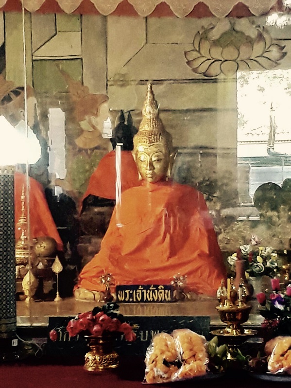 พระนั่งดินหรือพระเจ้านั่งดิน ตามตำนานเล่าขานว่าเมื่อ 1,213-2,000 ปีที่ผ่านมา พระพุทธเจ้าเสด็จ ณ พระธาตุดอยคำหรือ ดอยสิงกุตตระ ครั้งนั้นเจ้าเมืองเวียงพุทธรสะ คือ พระยาคำแดงและพระอรหันต พระอินทร์ ท่านฤาษีและพญานาคราชตั้งจิตอธิษฐานจัดสร้างองค์พระพุทธเจ้าด้วยดินเสร็จแล้วกราบทูลพระพุทธองค์ทอดพระเนตร เมื่อพระองค์ตรัสแล้วจับองค์พระดินด้วยพระหัตถ์องค์แล้วพระที่ปั้นดินก็เคลื่อนลงมานั่งพื้นดินจึงเป็นคำเรียกขานพระเจ้านั่งดิน ต่อมาเรียกพระนั่งดิน วัดพระนั่งดินไม่ควรพลาดโอกาสต้องไปให้ได้