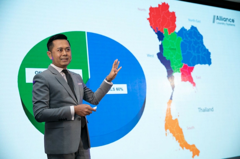 “ล่าสุดทางบริษัทได้จัดงาน Wealth Investment 2020 : Digital Era by Alliance Laundry Systems ขึ้น เพื่อให้ความรู้ในการทำธุรกิจที่ถูกต้องสำหรับผู้ลงทุน และเป็นการสนับสนุนตัวแทนจำหน่ายเราในการทำประชาสัมพันธ์ รวมทั้งจัดโปรโมชั่น ข้อเสนอพิเศษเพื่อส่งเสริมการขาย และการที่เรามีโรงงานตั้งอยู่ในประเทศไทย โดยใช้งบลงไปทุนไปกว่า 1,500 ล้านบาทนั้น เป็นสิ่งที่ยืนยันได้ว่า ทางบริษัทฯ มีความพร้อมอย่างเต็มที่ในด้านของการซัพพลายเครื่องและอะไหล่ ผู้ลงทุนและผู้แทนจำหน่ายจึงสามารถมั่นใจกับ ALS ในเรื่องเครื่องและบริการหลังการขายที่จะได้รับการดูแลเป็นอย่างดี ขณะเดียวกันเรายังคงเดินหน้าพัฒนาเทคโนโลยี และนวัตกรรมอย่างต่อเนื่อง เพื่อรองรับการเติบโตของธุรกิจ โดยได้เปิดตัวเครื่องซักผ้าอบผ้าหยอดเหรียญที่ใช้ระบบหน้าจอสัมผัส Touch Screen ทำให้ตัวเครื่องดูมีความเรียบหรู ง่ายต่อการใช้งาน ผู้บริโภคสามารถเลือกได้ถึง 34 ภาษา พร้อมคำอธิบายในแต่ละฟังก์ชั่น และสามารถอัพเดทซอฟแวร์ผ่านออนไลน์ได้ทันที รวมถึงการออกแบบเครื่องรุ่นใหม่ที่เรียกว่า Stax Combo เป็นเครื่องเครื่องซักล่าง-อบบน ทำให้ประหยัดพื้นที่ภายในร้าน