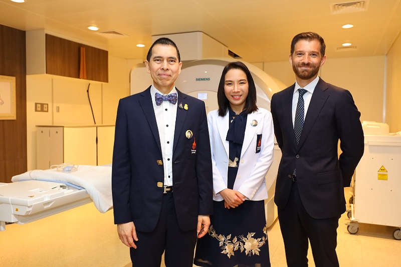 กรุงเทพฯ 18 พฤศจิกายน 2563 : ด้วยพระวิสัยทัศน์ใน ศาสตราจารย์ ดร. สมเด็จพระเจ้าน้องนางเธอ เจ้าฟ้าจุฬาภรณวลัยลักษณ์ อัครราชกุมารี กรมพระศรีสวางควัฒน วรขัตติยราชนารี องค์ประธานราชวิทยาลัยจุฬาภรณ์ ที่ทรงวางรากฐานการดำเนินงานด้านวิทยาศาสตร์ การค้นคว้าวิจัย การแพทย์นานัปการที่จะช่วยยกระดับการรักษาด้วยเทคโนโลยีที่ทันสมัยให้เกิดประโยชน์และความคุ้มค่าอย่างสูงสุด รวมทั้งมุ่งหวังให้เกิดการบูรณาการการรักษาโรคมะเร็งทุกภาคส่วนในการพัฒนาศักยภาพการตรวจรักษาโรคมะเร็งในประเทศไทย เพื่อขยายโอกาสทางการรักษาแก่ประชาชนทุกกลุ่ม ราชวิทยาลัยจุฬาภรณ์ สนองพระปณิธานโดยจัดทำโครงการที่จะผลักดันและขับเคลื่อนประเทศไทยสู่การเป็นเมดิคัลฮับ (Medical Hub) ด้านการรักษาโรคมะเร็งในภูมิภาคอาเซียน และในโอกาสครบรอบ 11 ปี โรงพยาบาลจุฬาภรณ์ ศูนย์ไซโคลตรอนและเพทสแกนแห่งชาติ ศูนย์ที่จัดตั้งขึ้นจากพระปณิธานและพระวิสัยทัศน์ขององค์ประธานราชวิทยาลัยจุฬาภรณ์ เพื่อให้เป็นศูนย์กลางการตรวจวินิจฉัยด้วยเทคโนโลยีขั้นสูงเพื่อให้เกิดประโยชน์และความคุ้มค่าอย่างสูงสุด โดยล่าสุดได้เปิดตัวเทคโนโลยีเพทเอ็มอาร์ไอ (PET/MRI) Biograph mMR 3 Tesla ที่นำมาให้บริการเป็นแห่งแรกในประเทศไทยเพื่อเข้ามาเสริมศักยภาพการให้บริการตรวจวินิจฉัยให้ครอบคลุมมากยิ่งขึ้นเป็น One Stop Shop Imaging ที่รวมนวัตกรรมเครื่องมือการสร้างภาพวินิจฉัยขั้นสูงในระดับโมเลกุลทางเวชศาสตร์นิวเคลียร์เพื่อการตรวจวินิจฉัยและรักษาอย่างครบวงจร โดยเครื่องเพทเอ็มอาร์ไอสามารถช่วยแพทย์ในการสร้างภาพการทำงานในระดับเซลล์ (Molecular Imaging) ที่ตรวจรอยโรคขนาดเล็กที่มีความซับซ้อนได้ เหมาะสำหรับการวินิจฉัยกับชนิดมะเร็งจำพวก มะเร็งต่อมน้ำเหลือง มะเร็งตับ มะเร็งสมอง มะเร็งนรีเวช มะเร็งศีรษะและลำคอ เป็นต้น โดยมี ศาสตราจารย์ นายแพทย์นิธิ มหานนท์ ผู้อำนวยการโรงพยาบาลจุฬาภรณ์ และเลขาธิการราชวิทยาลัยจุฬาภรณ์ เป็นประธานงานแถลงข่าว พร้อมด้วย รองศาสตราจารย์ แพทย์หญิงชนิสา โชติพานิช รองผู้อำนวยการโรงพยาบาลจุฬาภรณ์ ศูนย์ไซโคลตรอนและเพทสแกนแห่งชาติ, คุณฟิลิป เพเดอบอสค์ กรรมการผู้จัดการ ซีเมนส์ เฮลทธิเนียรส์ ประเทศไทย ฯลฯ เข้าร่วมงาน พร้อมกันนี้ยังมีคณะสื่อมวลชนให้ความสนใจ เข้ารับฟังเทคโนโลยีประสิทธิภาพอันล้ำหน้า พร้อมเข้าชมเทคโนโลยีเครื่องเพทเอ็มอาร์ไอ (PET/MRI)ณ อาคารศูนย์ไซโคลตรอนและเพทสแกนแห่งชาติ โรงพยาบาลจุฬาภรณ์ หลักสี่