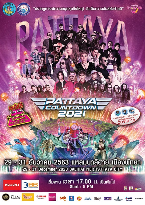 คุณรณกิจ เอกะสิงห์ รองนายกเมืองพัทยา, คุณดารัตน์ สุรักขกะ ผู้อำนวยการการท่องเที่ยวและกีฬา องค์การบริหารส่วนจังหวัดชลบุรี พร้อมด้วย คุณปฐมพงศ์ สิรชัยรัตน์ ประธานเจ้าหน้าที่บริหาร บริษัท โมโน เน็กซ์ จำกัด (มหาชน) ตัวแทน สถานีโทรทัศน์ ช่อง MONO29 (โมโน ทเวนตี้ไนน์) และ คุณวิชัย สินอนันต์พัฒน์ กรรมการ บริษัท ตรีเพชรอีซูซุเซลส์ จำกัด ร่วมกันแถลงข่าวการจัดงาน “PATTAYA COUNTDOWN 2021” (พัทยา เคาท์ดาวน์ 2021) ที่จะมีขึ้นในวันที่ 29-31 ธันวาคม 2563 นี้ ณ ท่าเทียบเรือท่องเที่ยวเมืองพัทยา (แหลมบาลีฮาย) จังหวัดชลบุรี โดยมีผู้บริหารเมืองพัทยา, ผู้บริหารในเครือ โมโน เน็กซ์ และผู้สนับสนุน พร้อมด้วยศิลปินและนักแสดง พีธ พีระ, แองจี้-ฐิติชา สมบัติพิบูลย์, โป่ง The Sun, มุก-พิชานา อยู่สุข, ญดา-นริลญา กุลมงคลเพชร, ถุงแป้ง-ภัทรวดี เหลาสา, ว่าน-พิรัลพัชร ลีลาเทพินทร์ และ RUSH Girl Gang (รัช เกิร์ล แก๊ง) ร่วมงาน ณ สเตจ 1 โมโน เน็กซ์ ออฟฟิศ ถ.ชัยพฤกษ์ จ.นนทบุรี