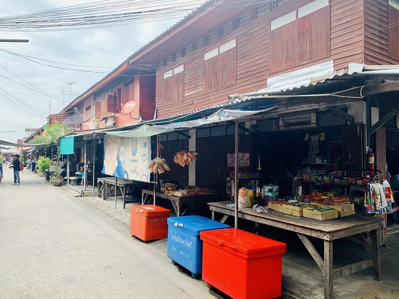 1 ตลาดเก่างิ้วรายตลาดโบราณเก่าแก่ ที่ต้องขอย้อนกลับไปประมาณ 100 ปีเห็นจะได้ ชุมชนตลาดเก่าโบราณงิ้วราย คู่กับ วัดงิ้วราย ดังนั้นเมื่อมีทางรถไฟสมัยรัชกาลที่ 5 จึงชื่อว่าสถานีรถไฟวัดงิ้วราย แต่ชุมชนชาวงิ้วรายนี้น่าจะมีมาตั้งแต่เมื่อปลายรัชกาลที่ 4 แห่งกรุงรัตนโกสินทร์ ผมเดินสำรวจดูก็เห็นว่าตลาดนี้เป็นห้องแถว ทางเดินตรอกเล็กๆ ยาวสัก 150 เมตร มีสิ่งสำคัญยิ่งเมื่อครั้งกระนั้นคือมีท่าเทียบเรือเมล์แดงรับส่งผู้โดยสารและสินค้าไปตามลำน้ำท่าจีนถึงเมืองสุพรรณบุรี สิ้นสุดแผ่นดินเมืองชัยนาท ซึ่งจะมีสินค้าล่องเรือในแม่น้ำท่าจีนจากเมืองสาครบุรีมาส่งให้ตลาดงิ้วราย เช่น กะปิ น้ำปลา ปลาเค็มและปลาทูสด บริเวณริมแม่น้ำท่าจีนจึงมีโรงนึ่งปลาทูแล้วส่งต่อไปจำหน่ายในตลาดบางปลาม้าและตลาดเมืองสุพรรณบุรี แล้วก็เช่นกัน เรือเมล์แดงจากเมืองสุพรรณบุรีล่องออกมาช่วงรุ่งอรุณแล้วมาถึงท่าเรืองิ้วราย รถไฟจะรอผู้โดยสารที่มากับเรือด้วยเช่นกันครับ นึกย้อนภาพวิถีชีวิตชุมชนงิ้วรายแบบนี้แล้วก็พลอยปลื้มปริ่มอิ่มใจยิ่งนัก แบบนี้เขาก็น่าจะเรียกอย่างสุภาษิตไทยที่ว่า “น้ำพึ่งเรือเสือพึ่งป่า รถไฟก็พึ่งเรือที่มีผู้โดยสารมา เป็นวัฏจักร” แต่ทุกวันนี้ไม่มีแล้ว พอได้เวลารถไฟก็ออกปู๊นๆ เรือเมล์แดงก็ไม่มีแล้วครับ ฮ่าๆๆ