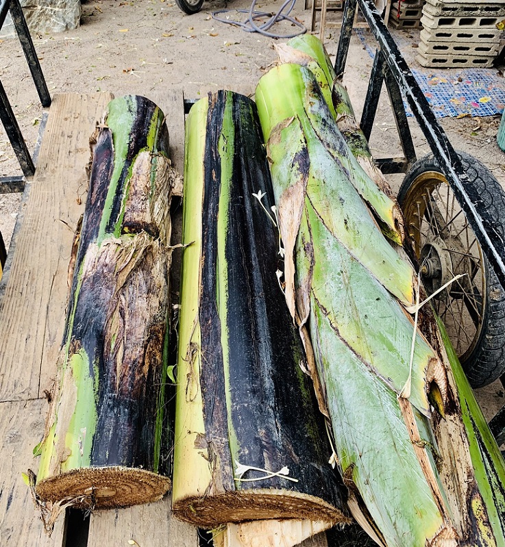 กล้วยตานี ถือว่าเป็นราชินีแห่งกล้วย ขณะเดียวกันก็มาพร้อมกับความเชื่อตามคติความเชื่อโบราณว่าจะมีนางตานีสิงสถิตอยู่ในกล้วยตานี แต่ดูเหมือนว่าปัจจุบันความเชื่อเรื่องนี้จะไม่สำคัญเท่ากับการที่กล้วยตานีกำลังได้รับการโปรโมทให้เป็นพืชเศรษฐกิจที่สร้างมูลค่าและมีคุณค่าได้ อย่างน้อยๆ ก็คือการนำมาทำเป็นกระเป๋ากาบกล้วยตานีที่สวยงามอย่างที่ว่ามานี้ละครับ ความรู้เรื่องกล้วยตานีในทางการเกษตรก็ว่าเป็นพืชล้มลุก พอปลูกแล้วประมาณ 7-8 เดือน ลำต้นจะใหญ่แล้วสูงประมาณ 3-4 เมตร ใบใหญ่สีเขียวและเหนียวมีเงางาม ด้วยเหตุผลนี้ทางกลุ่มวิสาหกิจชุมชนบ้านช่างสกุลบายศรี จึงนำต้นกล้วยตานี ใบกล้วยตานีมาผลิตเป็น