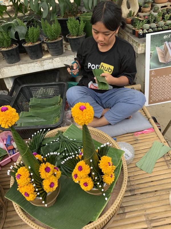 บ้านช่างสกุลบายศรี เป็นกลุ่มวิสาหกิจชุมชนโดยมีคุณธนกร สดใส เป็นประธานกลุ่มตามจุดประสงค์ต้องการสร้างรายได้ให้ชาวบ้านในชุมชนย่านนี้ ภายใต้ผลิตภัณฑ์ที่ทำด้วยกาบกล้วยตานี เรียกว่าเป็น “นวัตกรรมรักษ์โลก” เลยทีเดียวครับซึ่งคุณธนกร สดใส คิดเองในรูปแบบการดีไซน์ให้เข้ากับยุคสมัยใหม่ด้วย