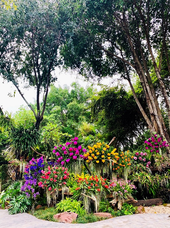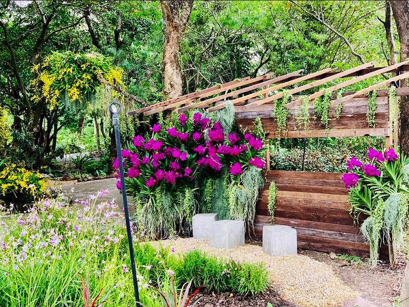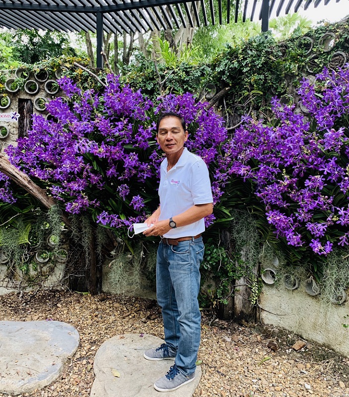The Blooms Orchid Park เป็นสวนกล้วยไม้ป่าบนผืนป่าที่คุณวิทยา ยุกแผน สร้างสรรค์ตามที่คิด โดยได้แรงบันดาลใจมาจากเมื่อครั้งที่ได้เยี่ยมชมการเคี่ยวน้ำตาลมะพร้าวและเหลือบเห็นดอกกล้วยไม้แขวนอยู่ที่โรงเคี่ยวน้ำตาลมะพร้าว ครั้งนั้นชาวต่างชาติร้อง โอ๊ะ!!! แล้วส่งภาษาบอกว่ามีกล้วยไม้แค่นี้เองหรอกรึ? ที่ คุณวิทยา ยุ เล่าเรื่องนี้ให้คณะสื่อมวลชนพวกผมฟังต่ออีกว่า ย้อนกลับไปสักราวๆ 15-17 ปีที่แล้วตอนนั้น ได้ฟังฝรั่งมังค่าถามแบบนั้นก็มาฉุกใจคิดว่า “เราเองก็ชอบกล้วยไม้ โดยเฉพาะกล้วยไม้ป่าเหมือนคุณพ่อที่ชอบสะสมไว้มาก มีที่ดินเป็นท้องนาอยู่ก็มากมาย 500-600 ไร่ เลยคิดว่าจะขอพลิกฟื้นพื้นดินที่นาบางส่วน เพื่อปลูกพันธุ์ไม้ยืนต้นให้เป็นร่มเงาของกล้วยไม้ป่า เพราะกล้วยไม้ป่ากินน้ำค้างเป็นอาหาร แต่ส่วนสำคัญต้องมีลำธารสายน้ำล้อมรอบพื้นที่ด้วยพันธุ์ไม้และกล้วยไม้ประมาณ 100 ชนิด” นี่คือหลักใหญ่ใจความส่วนหนึ่งเท่านั้นที่คุณวิทยาบอกเล่า มาถึงตอนนี้ก็เปิดให้ท่องเที่ยวเข้าชมกันได้ตามมาตรการป้องกันการแพร่ระบาดของโรคโควิด 19 ซึ่งพอเชื้อโรคโควิด 19 ระบาดเข้ามาในประเทศไทยทางอุทยานกล้วยไม้เดอะบลูมส์ ออร์คิด พาร์ค ก็หยุดพักไปชั่วขณะและใช้โอกาสนี้ในการปรับปรุงพื้นที่เพิ่มเติมเพื่อให้สมบูรณ์และสวยงามมากยิ่งขึ้น