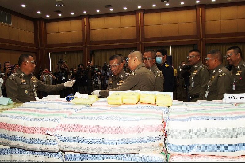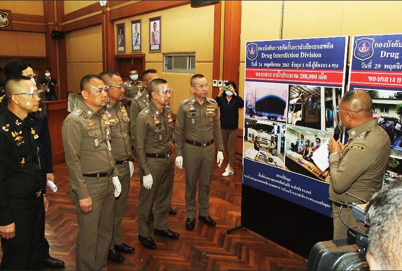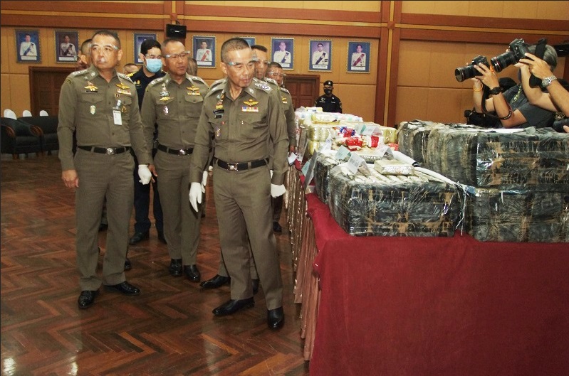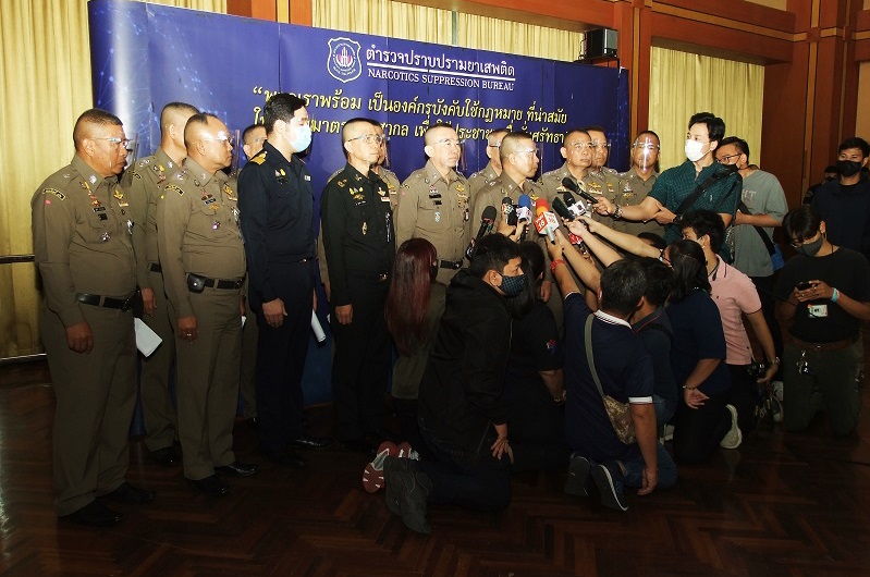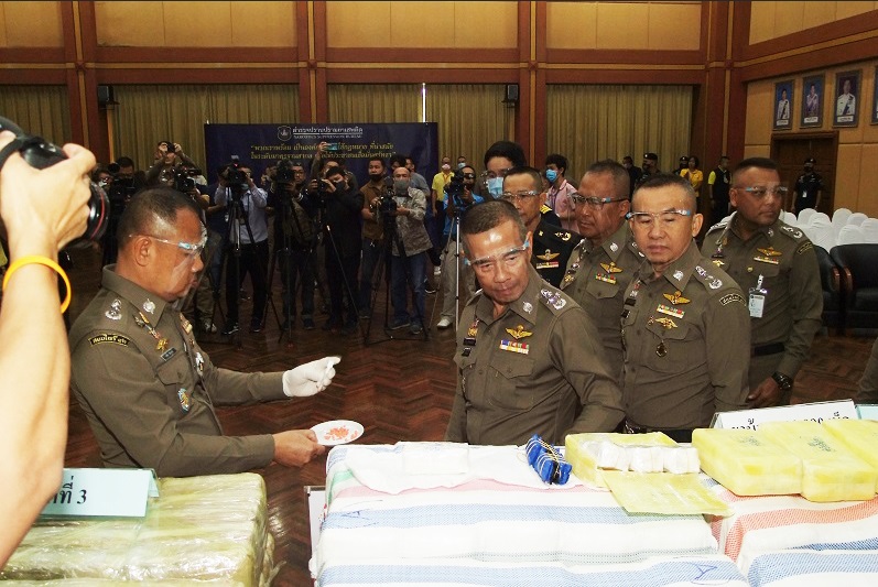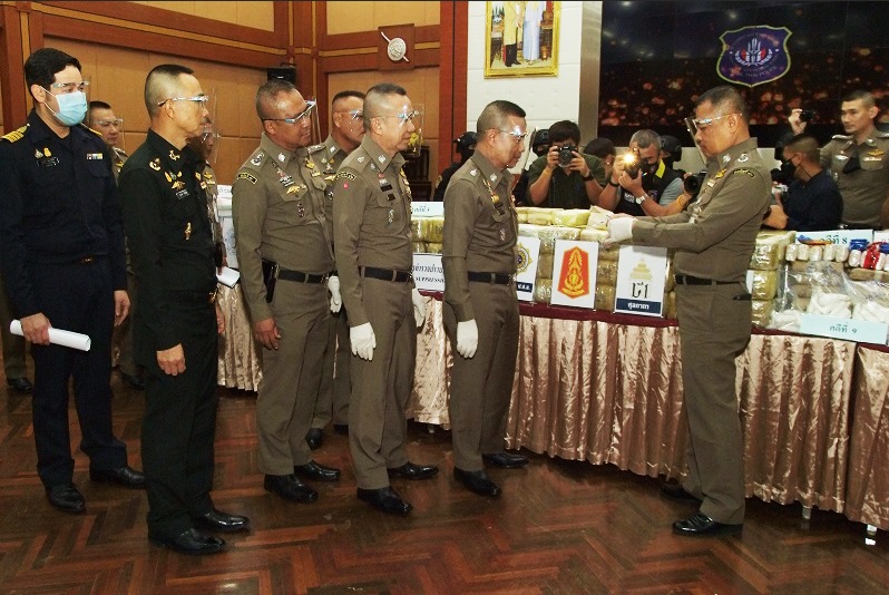 กองบัญชาการตำรวจปราบปรามยาเสพติด โดย พล.ต.ท.มนตรี ยิ้มแย้ม ผบช.ปส., พล.ต.ต.พรชัย เจริญวงศ์ รอง ผบช.ปส., พล.ต.ต.นพดล ศรสำราญ รอง ผบช.ปส., พล.ต.ต.สุศักดิ์ ปรักกมะกุล รอง ผบช.ปส., พล.ต.ต.อนุภาพ ศรีนวล รอง ผบช.ปส., พล.ต.ต.พรพิทักษ์ รู้ยืนยง ผบก.ปส.1, พล.ต.ต.วัชรินทร์ บุญคง ผบก.ปส.2, พล.ต.ต.บรรพต มุ่งขอบกลาง ผบก.ปส.3, พล.ต.ต.วุฒิพงษ์ นาวิน ผบก.ปส.4, พล.ต.ต.พลัฏฐ์ วิเศษสิงห์ ผบก.สกส., พล.ต.ต.วิวัฒน์ ลีลาเขตต์ ผบก.ขส., พล.ต.ต.สมบัติ ชูชัยยะ ผบก.อก.บช.ปส., พล.ต.ต.หญิง วนิดา หาญบุญเศรษฐ ผบก.ประจำ บช.ปส., สำนักงาน ป.ป.ส., กรมศุลกากร, กองอำนวยการรักษาความมั่นคงภายในราชอาณาจักร, ศูนย์รักษาความปลอดภัย, กองบัญชาการกองทัพไทย และกองทัพภาคที่ 2 แถลงข่าว ณ ห้องประชุมพรหมนอก ชั้น 2 กองบัญชาการตำรวจปราบปรามยาเสพติด ถนนวิภาวดีรังสิต กทม.