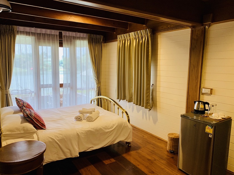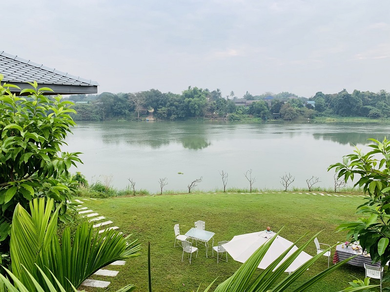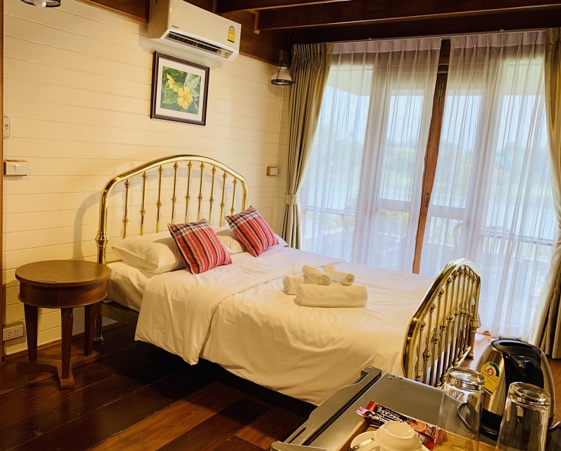 ส่วนหลังต่อมาอยู่ด้านหน้าสุด ซื้อมาจากย่านสีลม เมืองหลวงกรุงรัตนโกสินทร์ เป็นบ้านของคนร่ำรวย สันนิษฐานว่าน่าจะสร้างในสมัยรัชกาลที่ 6 บ้านหลังนี้สุดคลาสสิคมากๆ” หลังจากนั้นคุณสัญญาพาเยี่ยมบ้านไม้สักสวยงามทุกหลัง เดินไปคุยกันไปว่าหลังนี้เป็นสถานที่ใช้ถ่ายทำละครเรื่อง “รักแลกภพ” ใช้เป็นบ้านของพระเอกและมีหลังติดกันเป็นบ้านของคุณปู่คุณย่า เริ่มต้นที่บ้านของพระเอก เข้าบ้านก็เจอเจ้าของบ้านก่อนเลยครับ ขึ้นบันไดบ้าน จะเป็นห้องนอน ห้องพระพุทธรูปและห้องนอนเล็ก ที่แปลกคือมีบันไดขึ้นลงสำหรับคนรับใช้ด้วยครับ เพื่อให้นำอาหารมาเสิร์ฟให้เจ้านายได้จากครัว การใช้บ้านหลังนี้ถ่ายทำละครย้อนยุคละครแนวพีเรียดแบบนี้ได้ทั้งรายได้และได้ความรู้เรื่องของบ้านโบราณต่างๆ คนโบราณนี่เขาช่างคิดใช่ย่อย ก็ดูอย่างเรื่องของการรับส่งอาหารจากทางขึ้นลงบันไดให้เจ้านายได้อย่างสะดวกและไม่ไปวุ่นวายกับแขกเหรื่อถ้ามีแขกมาเยี่ยมเยือนเรือนชาน ช่างเหมาะสมจริงๆ ครับ ในส่วนของบ้านอีกหลัง ซึ่งอยู่ใกล้ๆ กันในฉากของละคร “รักแลกภพ” ซึ่งเป็นบ้านของคุณปูคุณย่านั่น มีความสวยงามอย่างมีคุณค่ามากๆ ทั้งในส่วนของตัวบ้านไม้สักและการตกแต่งภายใน ช่างสวยงามและเหมาะมากกับการจัดงานพิธีการงานต่างๆ โดยเฉพาะ “พิธีมงคลสมรส” ผมขอบอกเลยครับว่าใครที่มองหาสถานที่จัดงานแต่งงานแบบโบราณย้อนยุค ก็ลองมาเยี่ยมชมบ้านบุราณบางโตนดที่นี่กันก่อนนะครับ โดยเฉพาะการจัดพิธีมงคลสมรสแบบย้อนยุค สมัยรัชกาลที่ 6 นอกจากนี้ก็ยังสามารถจัดงานวันเกิด งานพบปะสังสรรค์เป็นหมู่คณะ ก็จัดได้เพราะบุราณบางโตนดมีที่นั่งเล่นพักผ่อนริมน้ำแม่กลองให้สรวลเสเฮฮาสนุกสนานได้อย่างสุขำราญใจ ลมพัดเย็นๆ คล้ายบ้านพักผ่อนส่วนตัว ไม่ต่างจากพักห้องริมน้ำแม่กลองของผมคราวนี้ซึ่งมองวิวทิวทัศน์สองฝั่งแม่น้ำช่วงแสงตะวันส่องแสงอ่อนๆ ยามเย็นได้จากมุมระเบียงของห้องพัก ก็สุขกายสุขใจไม่น้อย แต่หากมาเป็นครอบครัว ก็มีห้องแบบพิเศษเป็นบ้านพักแบบสองชั้นมี 2 ห้องนอน และห้องนั่งเล่นที่สำคัญติดริมน้ำด้วยครับ