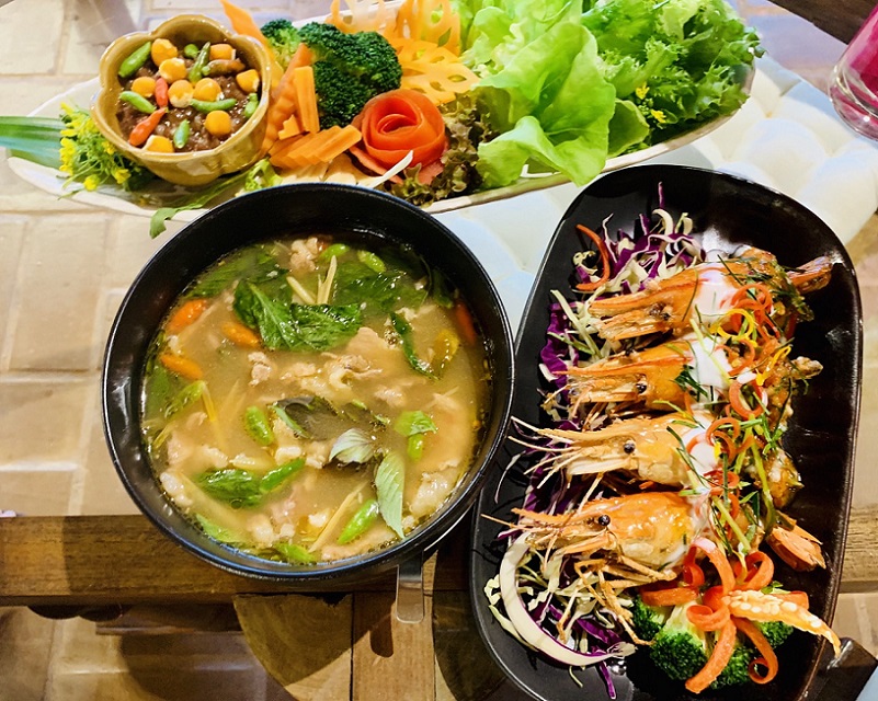 ในส่วนของอาหารมื้อเย็นนั่น ที่นี่มีบริการเฉพาะแขกที่มาพักเท่านั้นครับ สามารถสั่งล่วงหน้าได้เลย วันนี้ผมมีเมนูมาน้ำเสนอที่กินแล้วจะติดใจเหมือนผมครับ เมนูเด็ดโดนใจที่ว่านี้คือ “แกงรัญจวน” ได้มาชิมที่นี่แล้วติดใจได้เลยแถมด้วยกุ้งผัดพริกขิงและผักสดกับน้ำพริกลงเรือ งานบอกได้คำเดียวครับว่าไม่กินจะถือว่ามาไม่ถึงนะครับ ในยามเช้ารุ่งขึ้น ผมก็ยังได้ลิ้มลองรสชาติอาหารอร่อยๆ ของบุราณบางโตนดที่เขาจัดให้ครับกับที่นั่งโต๊ะติดริมน้ำ