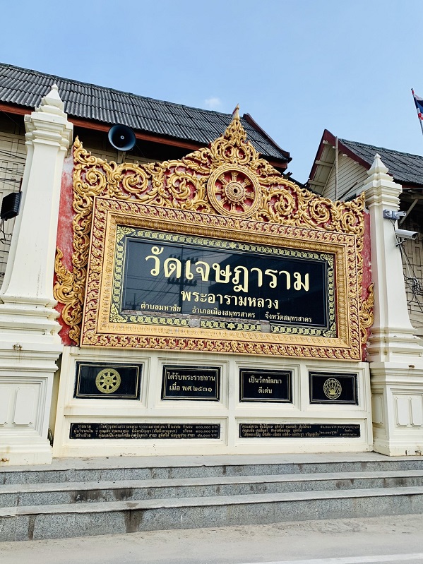 วัดเจษฎาราม พระอารามหลวงชั้นตรีตั้งอยู่ริมคลองมหาชัย ตำบลมหาชัย เขตอำเภอเมือง จังหวัดสมุทรสาคร วัดเจษฎารามมีประวัติความเป็นตั้งแต่เมื่อใดไม่มีข้อมูลบันทึกไว้ แต่กล่าวกันเองว่าบริเวณนี้มีอุโบสถหลังเก่าๆ ตั้งอยู่แล้ว ต่อมาในปี พ.ศ.2401 ตรงกับสมัยรัชกาลที่ 4 แห่งพระราชวงศ์จักรี ครั้งนั้นพระอาจารย์น่วมแห่งวัดแสมดำ ท่านได้ร่วมกันกับชาวบ้านย่านเมืองสาครบุรีหรือต่อมาคือจังหวัดสมุทรสาคร สร้างวัดขึ้นมาแล้วเรียกชื่อว่า วัดธรรมสังเวช แต่ชาวบ้านเรียก วัดกระเจ็ด มาจนกระทั่งในปี พ.ศ.2439 สมัยพระบาทสมเด็จพระจุลจอมเกล้าเจ้าอยู่หัวหรือพระพุทธเจ้าหลวงรัชกาลที่ 5 แห่งพระบรมราชวงศ์จักรี เสด็จพระราชดำเนินเมืองสมุทรสาครพร้อมกับเจ้าจอมมารดาโหมดและทรงประทับแรม 1 ราตรี ณ วัดกระเจ็ดเพื่อทรงประกอบพระราชกุศลแล้วพระราชทานนามว่า วัดเจษฎาราม