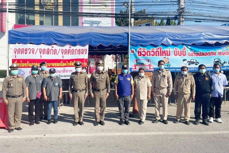 ต่อมา เวลา 14.40 น. พล.ต.ต.อุทัย กวินเดชาธร ผบก.ภ.จว.เพชรบุรี พร้อมด้วย ร.ต.อ.ธรรมนาวิน ภูโต รอง สวป.สภ.บ้านแหลม ตรวจเยี่ยมจุดตรวจคัดกรองประชาชน เพื่อป้องกันการแพร่ระบาดของโรคติดเชื้อไวรัสโคโรน่า(Covid-19) ณ บริเวณถนนกั้นน้ำเค็มสายหาดเจ้าสำราญ-บ้านแหลม จุดตรวจแยกดอนผิงแดด ต.บางขุนไทร อ.บ้านแหลม จ.เพชรบุรี กม.ที่ 8/770 พบ นายถวิล รุ่งเพียร ผู้ใหญ่บ้าน ม.5 ต.บางขุนไทร อ.บ้านแหลม จ.เพชรบุรี, ข้าราชการตำรวจ และเจ้าหน้าที่ที่เกี่ยวข้องอยู่ปฏิบัติหน้าที่ รายงานหตุการณ์ทั่วไปปกติ