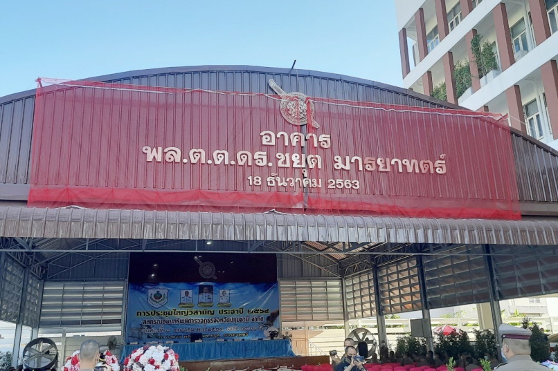 พล.ต.ต.ชยุตฯ ได้กล่าวขอบคุณผู้สนับสนุนทั้ง 3 ท่าน ตลอดจนผู้ที่มีส่วนเกี่ยวข้องที่ทำให้การก่อสร้างอาคารเอนกประสงค์ดังกล่าวสำเร็จลุล่วงและบรรลุตามวัตถุประสงค์ของทางราชการ
