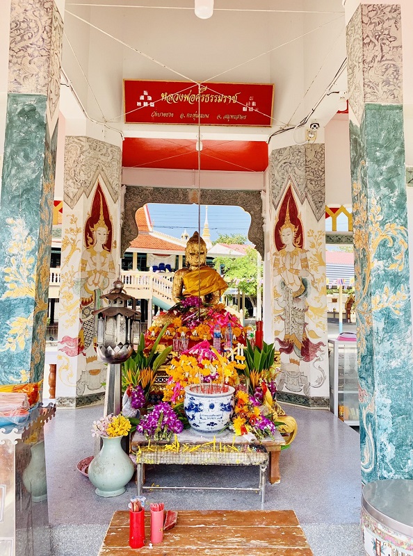 เรากลับมาที่วัดบางยาง กันต่อกันนะครับ คริๆ เพราะเริ่มจะร่ายยาวเหยียดแล้วครับ วัดบางยางมีองค์พระพุทธรูปแกะสลักด้วยศิลาแลงเก่าแก่มากๆ สันนิษฐานกันเองว่าน่าจะเป็นพระพุทธรูปสมัยเมืองนครศรีธรรมราชเมืองที่รุ่งเรืองทางพระพุทธศาสนาด้วยเหตุนี้จึงมีเรื่องราวเล่าขานสืบมาหลายชั่วอายุคนตั้งแต่สมัยรัชกาลที่ 5 แห่งกรุงรัตนโกสินทร์ท่านเจ้าอาวาสวัดบางยาง ได้ไปเมืองนครศรีธรรมราชแล้วพบองค์พระพุทธรูปแกะสลักด้วยศิลาแลงถูกทิ้งขว้างบริเวณวัดแห่งหนึ่งจึงขออัญเชิญลงแพล่องมาจากเมืองนครศรีธรรมราช เมื่อถึงวัดบางยางได้อัญเชิญประดิษฐานในอุโบสถและทุกค่ำคืนท่านเจ้าอาวาสก็นิมิตเห็นองค์พระพุทธรูปบอกไม่ต้องการประดิษฐานในอุโบสถ เมื่อเป็นเช่นนี้จึงได้จัดสร้างมณฑลอยู่ริมน้ำคลองดำเนินสะดวกแล้วอัญเชิญองค์พระพุทธรูปมาประดิษฐานตามนิมิตแล้วเรียกว่า “หลวงพ่อศรีธรรมราช” เพราะอัญเชิญมาจากเมืองนครศรีธรรมราช