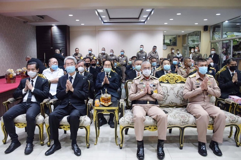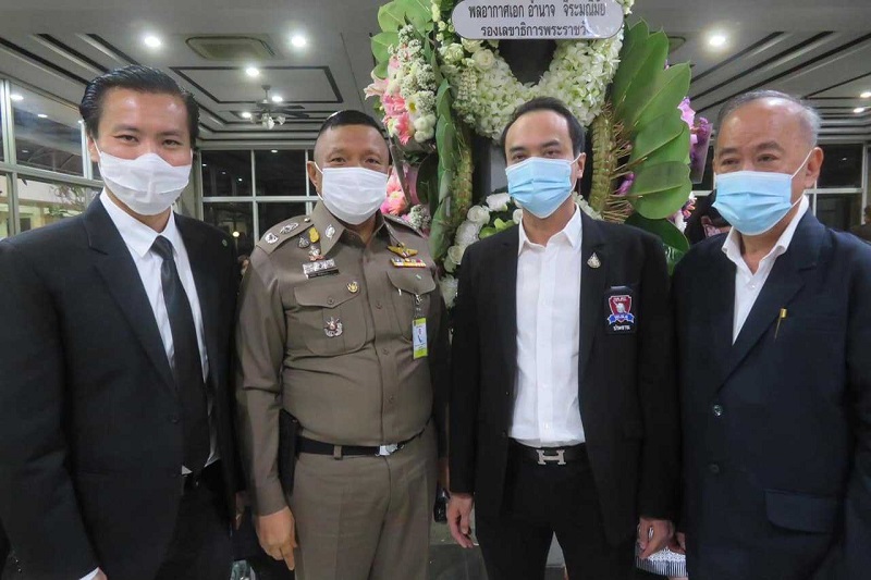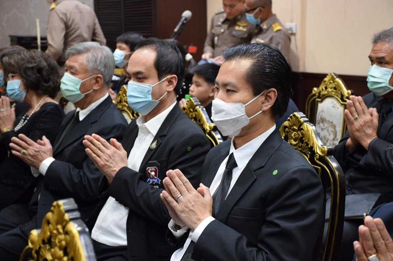 โดยมี พล.ต.ต.ดร.เสนิต-คุณมนสิการ สำราญสำรวจกิจ รองผบช.น. พร้อมภริยา, ดร.สุจินต์ ไชยชุมศักดิ์ ผวจ.นนทบุรี, คุณสุภดิช อากาศฤกษ์ รักษาการหัวหน้าพรรคเศรษฐกิจใหม่, คุณปรพล อดิเรกสาร ที่ปรึกษาฝ่ายการเมือง ผช.รัฐมนตรีประจำนายกรัฐมนตรี, คุณกิตติพงษ์ เตรัตนชัย ประธานที่ปรึกษา กต.ตร.บก.น.6., คุณศักดิ์ณรงค์ โลจนะรุ่งสิริ, อจ.สมพงษ์ แก้วเจริญไพศาล ผู้ช่วยอธิการบดี ม.หอการค้าไทย, คณะกต.ตร., เจ้าหน้าที่ตำรวจ และแขกผู้มีเกียรติ เข้าร่วมพิธีพระราชทานน้ำหลวงอาบศพ และสวดพระอภิธรรม ณ วัดตรีทศเทพวรวิหาร ศาลา5/1
