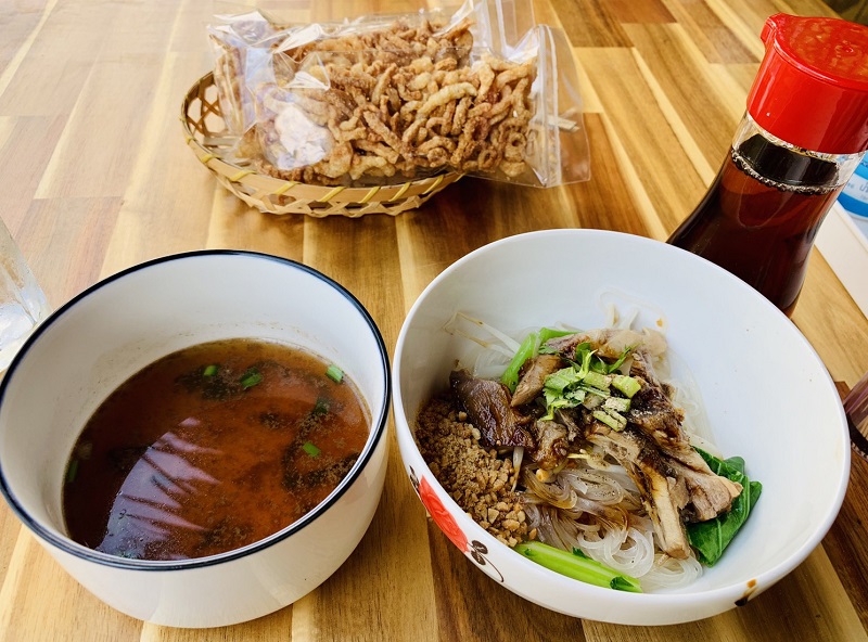 เสร็จแล้วก็ไปกินก๋วยเตี๋ยวหมูหรือจะเป็นก๋วยเตี๋ยวเนื้อตามชอบกันที่ร้านหน้าวัดอินทร์ ผมได้ลองลิ้มชิมรสมาแล้วกับรายการเส้นหมี่แห้งหมู 1 ชาม ตามด้วยเส้นหมี่แห้งเนื้อ 1 ชาม ก๋วยเตี๋ยวหมู ชามละ 30 บาท ก๋วยเตี๋ยวเนื้อ ชามละ 35 บาทเบ็ดเสร็จจ่ายเงินให้ไป 75 บาท บวกน้ำเปล่า 1 ขวด 10 บาทครับ ก็อิ่มอร่อยดีไม่น้อยกับร้านก๋วยเตี๋ยวหมู/เนื้อ ร้านเล็กๆ หน้าวัดอินทร์แบบสบายๆ
