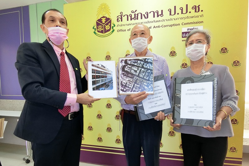 วันที่ 1 ก.พ.64 เวลา 10.00 น. ที่ สำนักงานคณะกรรมการป้องกันและปราบปรามการทุจริตแห่งชาติ (ป.ป.ช.) จังหวัดนนทบุรี โดย ทนายอนันต์ชัย ไชยเดช (ทนายกระดูกเหล็ก) พร้อมคุณสมชาย และคุณเพชรรัตน์ อุตมะวณิชย์ ผู้เสียหายที่เป็นเจ้าของอาคารย่านสวนมะลิ ที่มีคำสั่งให้รื้อถอนอาคารของผู้เสียหาย จากสำนักงานเขตป้อมปราบศัตรูพ่าย หลังจากที่ผู้เสียหาย ได้ออกมาร้องขอความเป็นธรรม ในการไม่ให้เจ้าหน้าที่เขตฯ เข้ามารื้ออาคารดังกล่าว แต่ทางเจ้าหน้าที่เขตฯ กลับไม่สนใจ ถือคำสั่งศาลชั้นต้น เข้ารื้อถอนอาคารส่วนที่ต่อเติมอย่างไม่เป็นธรรม