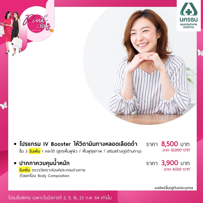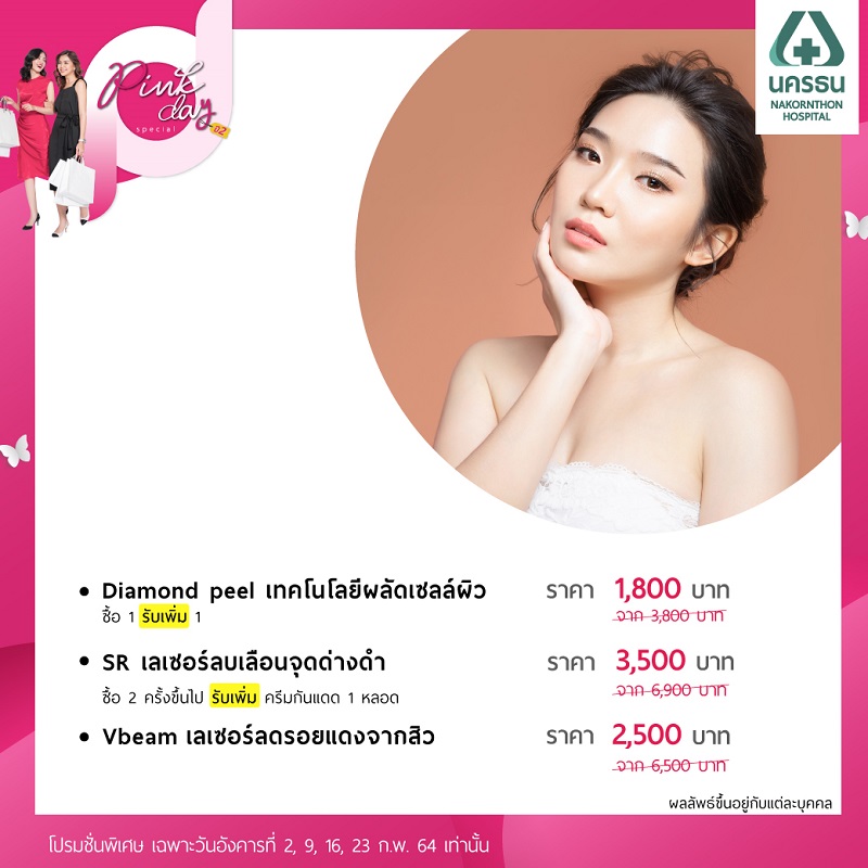 โรงพยาบาลนครธน จัดแคมเปญ “Pink Day Special ปี 2” กับโปรโมชั่นสุดพิเศษ ลดกระหน่ำสวยครบ จบทุกดีล ทั้งสายสุขภาพและความงามที่จัดมาเพื่อคุณผู้หญิงโดยเฉพาะ ซื้อโปรแกรมไหน ซื้อเท่าไหร่ก็คุ้ม ลดแบบจุก ๆ กันไปเลย ทั้งศูนย์ผิวหนังและความงาม เลเซอร์ผิวสวย กระชับผิวหน้า ลบเลือนจุดด่างดำ ศูนย์สุขภาพสตรี ตรวจมะเร็งสตรี 3 รายการครบครัน และศูนย์เวชศาสตร์ชะลอวัย เติมวิตามินให้ร่างกาย ฟื้นฟูผิวให้ Bright และโปรแกรมลดพุง ควบคุมน้ำหนัก