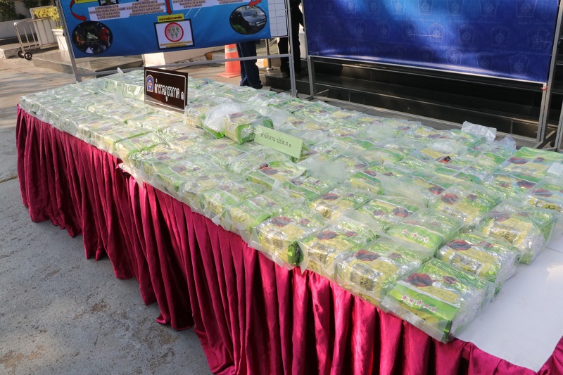 1.) ยาเสพติดให้โทษประเภท 1 (ยาไอซ์) จำนวน 5 กระสอบ ตรวจนับได้ จำนวน 113 ห่อ (ประมาณ113 กิโลกรัม) แต่ละห่อบรรจุอยู่ภายในถุงชาสีเขียว บรรจุอยู่ภายในกระสอบถุงปุ๋ยสีขาว-เหลือง ห่อด้วยถุงพลาสติกสีดำ พันทับด้วยพลาสติกใส จำนวน 5 กระสอบ ซึ่งแต่ละกระสอบบรรจุอยู่ 25 กิโลกรัม พบอยู่ภายในเบาะนั่งแถวสาม รถยนต์ยี่ห้อโตโยต้า รุ่นฟอร์จูนเนอร์ สีดำ ทะเบียนกรุงเทพฯ