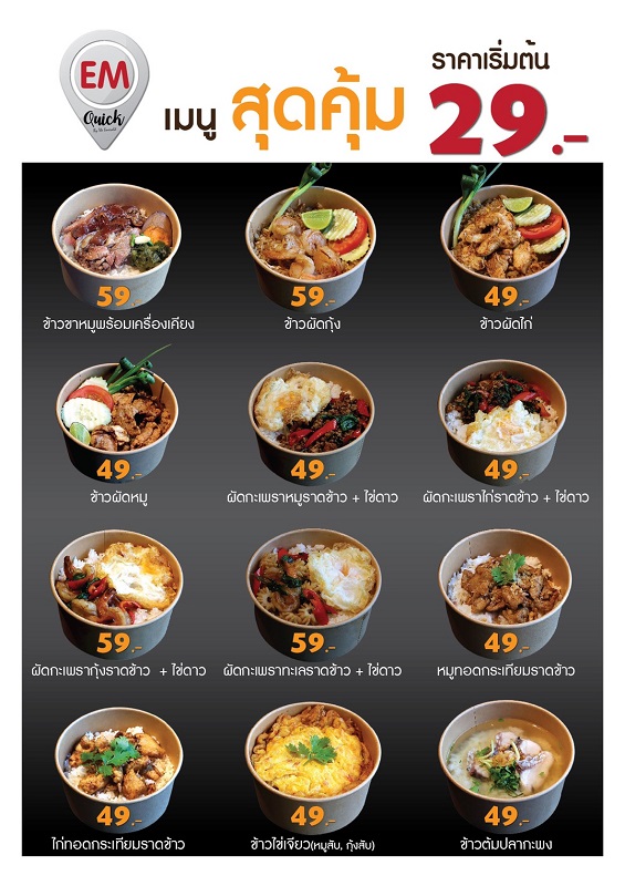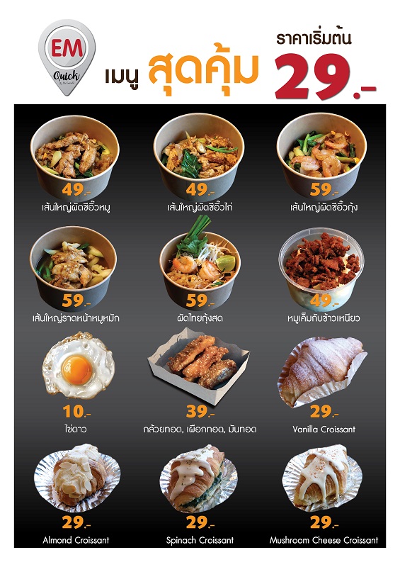 “Em Quick Drive Thru” บริการใหม่ล่าสุดของ โรงแรม ดิ เอมเมอรัลด์ ด้วยการจำหน่ายอาหารเมนูเด็ดที่ขึ้นชื่อ ระหว่างเวลา 07.00-13.00 น. เฉพาะวันจันทร์ – วันศุกร์ เพื่อให้คุณลูกค้าสะดวกมากยิ่งขึ้นกับการได้ทานของโปรดที่ชื่นชอบกว่า 25 รายการโดยไม่ต้องลงจากรถ ทั้งอาหารจานเดียว ของว่างทานเล่น เบเกอรี่ ในราคา Street Food เริ่มต้นเพียง 29 บาทเท่านั้น อาทิ ข้าวขาหมู ผัดไทยกุ้งสด ราดหน้าหมูหมัก ผัดซีอิ๊ว ข้าวต้มปลากะพง หมูเค็มกับข้าวเหนียว กล้วยทอด ครัวซองต์ ชาไทย กาแฟโบราณ ฯลฯ