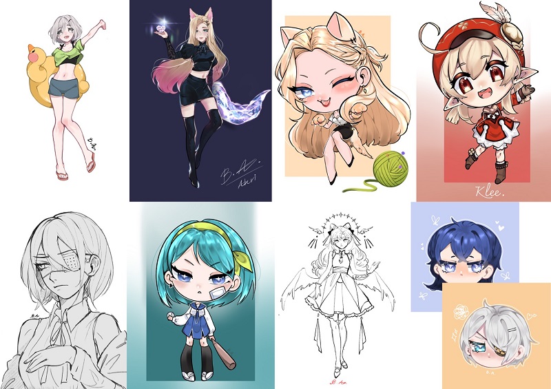 ถือเป็นธุรกิจที่มาแรงได้รับการควักกระเป๋าจ่ายจากวงการนักเขียนมากที่สุดที่ชื่นชอบตัวการ์ตูนจิบิ เพื่อนำไปประกอบในนิยายของนักเขียนแต่ละคน เราได้คว้านักวาดจิบิมาเล่าถึงงานพิเศษที่รักอย่าง น.ส. พิมพ์ชนก จันทร์ไทย ชื่อเล่น แบม นักศึกษา ม.กรุงเทพฯ รังสิต ยอมรับว่าตั้งราคาวาดเชิงพาณิชย์ตามกระแส เพราะถือว่าผู้จ้างนำภาพไปใช้ก่อให้เกิดรายได้ แต่ถ้าไม่ได้นำงานวาดไปทำขายก็จะคิดอีกราคานึง โดยแบมเล่าถึงงานวาดจิบิพร้อมราคาที่ตั้งขึ้นว่า…