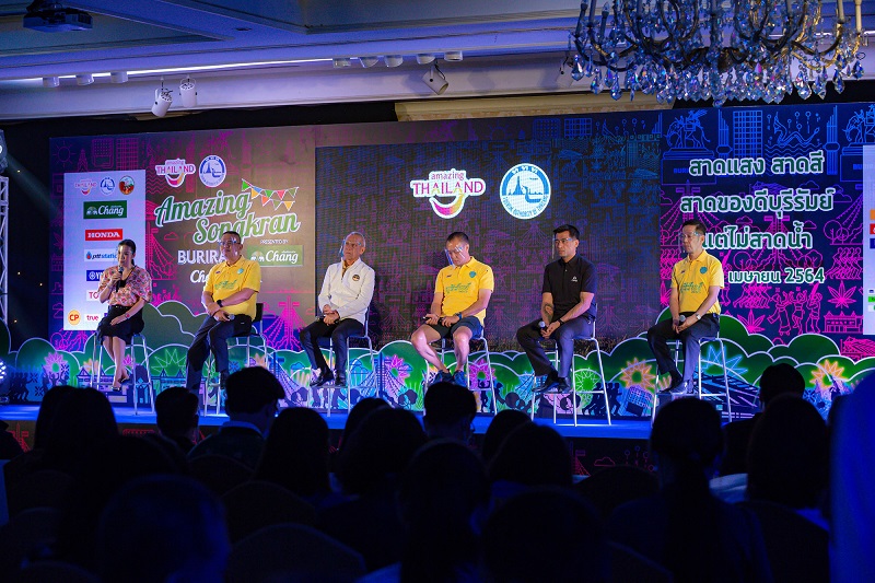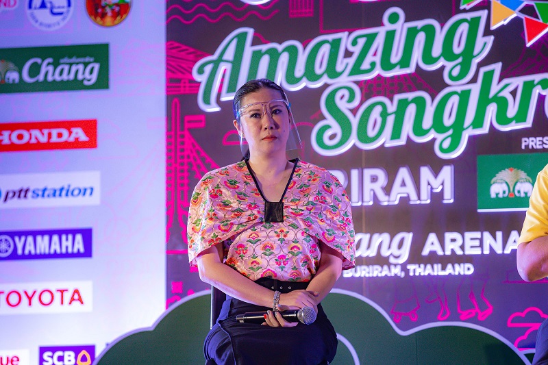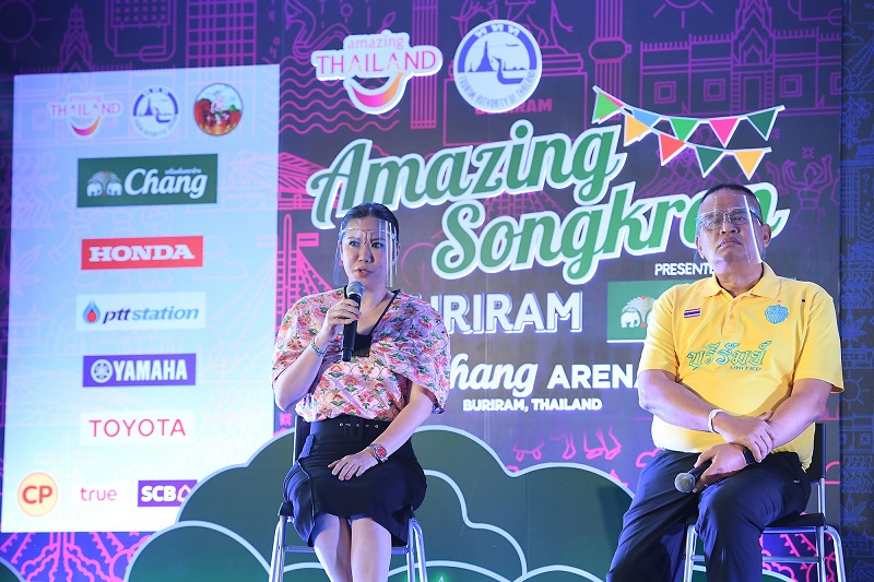 นางสาวฐาปนีย์ เกียรติไพบูลย์ รองผู้ว่าการด้านสินค้าและธุรกิจท่องเที่ยว การท่องเที่ยวแห่งประเทศไทย (ททท.) กล่าวว่า ในฐานะหน่วยงานที่รับผิดชอบโดยตรงในการช่วยเหลือธุรกิจท่องเที่ยว โรงแรม และการบริการที่รับผลกระทบจากการแพร่ระบาดของไวรัสโควิด-19 จึงได้เข้ามาสนับสนุนงาน Amazing Songkran Buriram ในฐานะ Title Sponsor ตามกลยุทธ์ “Event Marketing” ซึ่งเป็นการส่งเสริมศิลปวัฒนธรรมของไทย โดยใช้เทศกาลงานสงกรานต์ เป็น Game Changer ในการจัดกิจกรรม เพื่อกระตุ้นการท่องเที่ยว ประชาสัมพันธ์ให้นักท่องเที่ยวทั้งชาวไทยและชาวต่างชาติเกิดความเชื่อมั่นในด้านความปลอดภัยในการควบคุม บริหารจัดการด้านสาธารณสุขของประเทศไทย โดย ททท. ยังคงดำเนินการจัดกิจกรรมในรูปแบบต่าง ๆ ที่ใช้หลักการผ่อนคลายตามมาตรการของ ศบค. และแนวทางการจัดกิจกรรมเพื่อป้องกันการกระจายเชื้อของกระทรวงสาธารณสุขอย่างเข้มงวด