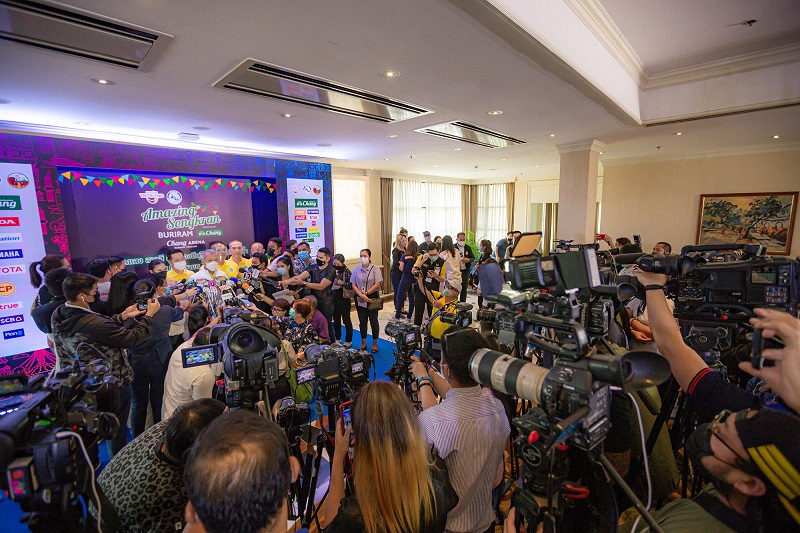 วันที่ 12 มี.ค.64 ณ สโมสรราชพฤกษ์ กรุงเทพฯ นายพิพัฒน์ รัชกิจประการ รัฐมนตรีว่าการกระทรวงการท่องเที่ยวและกีฬา พร้อมด้วย นายธัชกร หัตถาธยากูล ผู้ว่าราชการจังหวัดบุรีรัมย์, นางสาวฐาปนีย์ เกียรติไพบูลย์ รองผู้ว่าการด้านสินค้าและธุรกิจท่องเที่ยว การท่องเที่ยวแห่งประเทศไทย, นายสุรพล อุทินทุ ผู้บริหารสำนักประสานงานภายนอก บริษัท ไทยเบฟเวอเรจ จำกัด (มหาชน) โดยเครื่องดื่มตราช้าง, นายแพทย์วิทิต สฤษฎีชัยกุล นายแพทย์สาธารณสุขจังหวัดบุรีรัมย์ และ นายเนวิน ชิดชอบ ประธาน สโมสรฟุตบอล บุรีรัมย์ ยูไนเต็ด และประธานสนามช้าง อินเตอร์เนชั่นแนล เซอร์กิต ร่วมแถลงข่าวจัดเทศกาล “อะเมซิ่ง สงกรานต์บุรีรัมย์ พรีเซ็นเต็ด บาย เครื่องดื่มตราช้าง” (AMAZING SONGKRAN BURIRAM PRESENTED BY CHANG) สุดยอดงานสงกรานต์แนวคิดใหม่ ที่ยิ่งใหญ่ที่สุด ปลอดภัยที่สุด และสนุกสนานที่สุด ภายใต้คอนเซ็ปต์ “สาดแสง สาดสี สาดของดี บุรีรัมย์ แต่ไม่สาดน้ำ” ซึ่งจะมีขึ้นในวันที่ 6-15 เม.ย.64 ณ จ.บุรีรัมย์