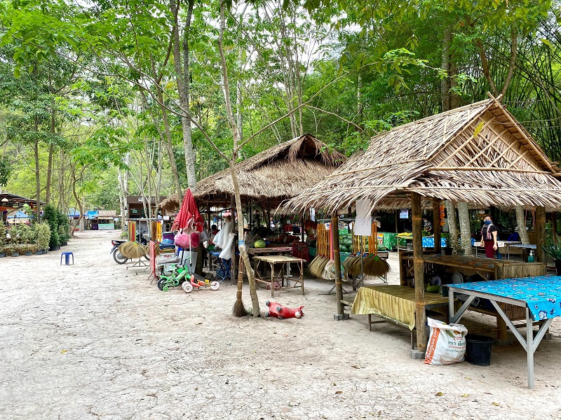 เมื่อได้มาเที่ยวชมธรรมชาติอุโมงค์ต้นไผ่แล้วถ้าจะทำบุญกับทางวัดจุฬาภรณ์ฯ ด้วยก็ได้กุศลด้วยนะครับ เสร็จแล้วก็แวะเยี่ยมชมอุโบสถด้านในสุดของวัดอีกสักที่แต่หากอยากนั่งพักบ้างก็มีร้านค้าชุมชนที่น่าอุดหนุนไม่น้อย มีทั้งร้านกาแฟสด ร้านขายพืชผักผลไม้ของชาวบ้านย่านชุมชนนี้มาจำหน่ายหลากหลายชนิด