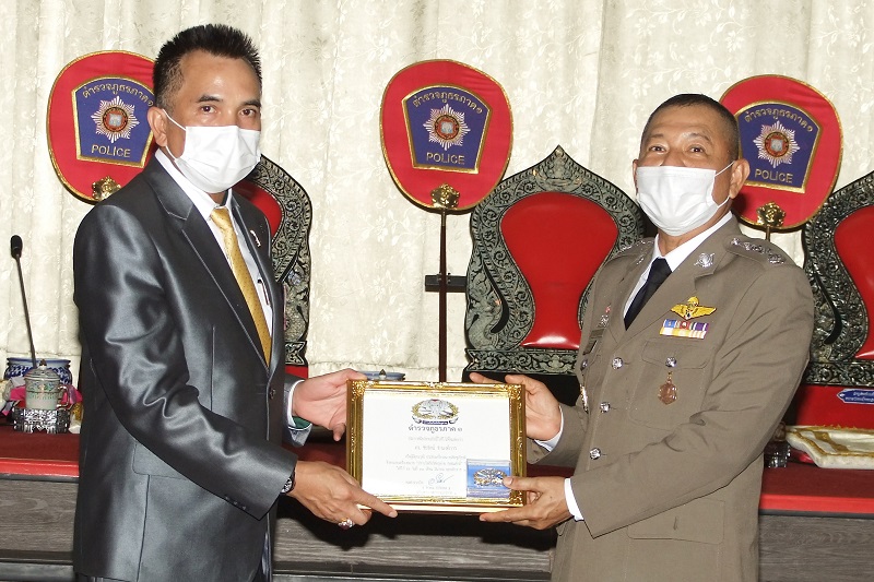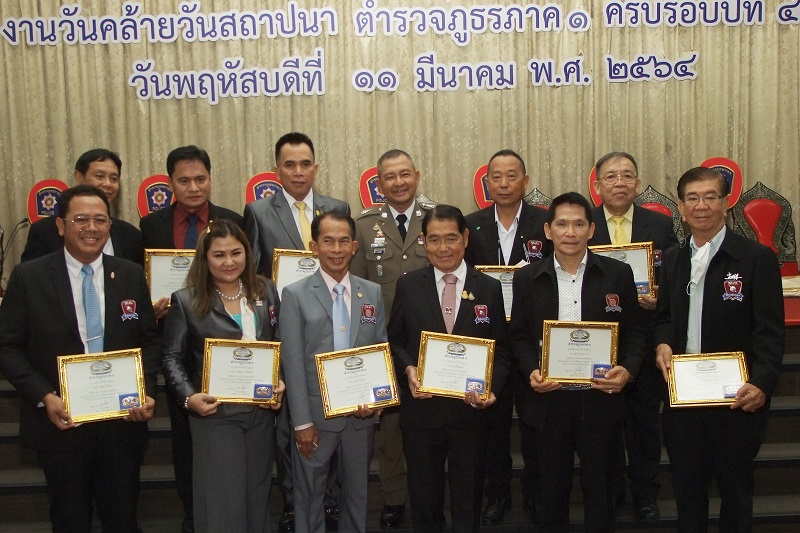 จากนั้น ณ ห้องประชุมอมรวิวัฒน์ อาคารอเนกประสงค์ ภ.1 มีพิธีเชิดชูเกียรติ มอบประกาศนียบัตร และประดับเครื่องหมาย “ปราบไพรีอริศัตรูพ่าย กิตติมศักดิ์” ให้แก่ ดร.ชัยรัตน์ จำนงค์การ ผู้ทรงคุณวุฒิ-ที่ปรึกษา กต.ตร.ภ.1-ประธาน กต.ตร.จว.นนทบุรี (ภาคประชาชน), พร้อมคณะที่ปรึกษา กต.ตร.ภ.1 ที่เป็นผู้มีคุณวุฒิ ซึ่งเป็นผู้ทำคุณประโยชน์ให้แก่ตำรวจภูธรภาค 1 และมอบของที่ระลึก