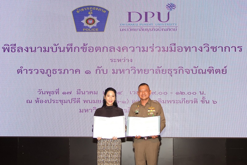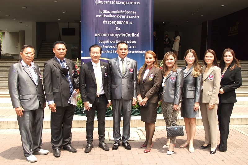 วันที่ 17 มี.ค.64 ระหว่างเวลา 10.00-12.00น. น. พล.ต.ท.อำพล บัวรับพร ผบช.ภ.1 และ ดร.ดาริกา ลัทธพิพัฒน์ อธิการบดีมหาวิทยาลัยธุรกิจบัณฑิตย์ ร่วมพิธีลงนามบันทึกข้อตกลงความร่วมมือทางวิชาการ ระหว่าง ตำรวจภูธรภาค 1 กับ มหาวิทยาลัยธุรกิจบัณฑิตย์ เพื่อขับเคลื่อนงานกิจกรรมองค์กรร่วมกันในรูปแบบต่างๆ ในอนาคต