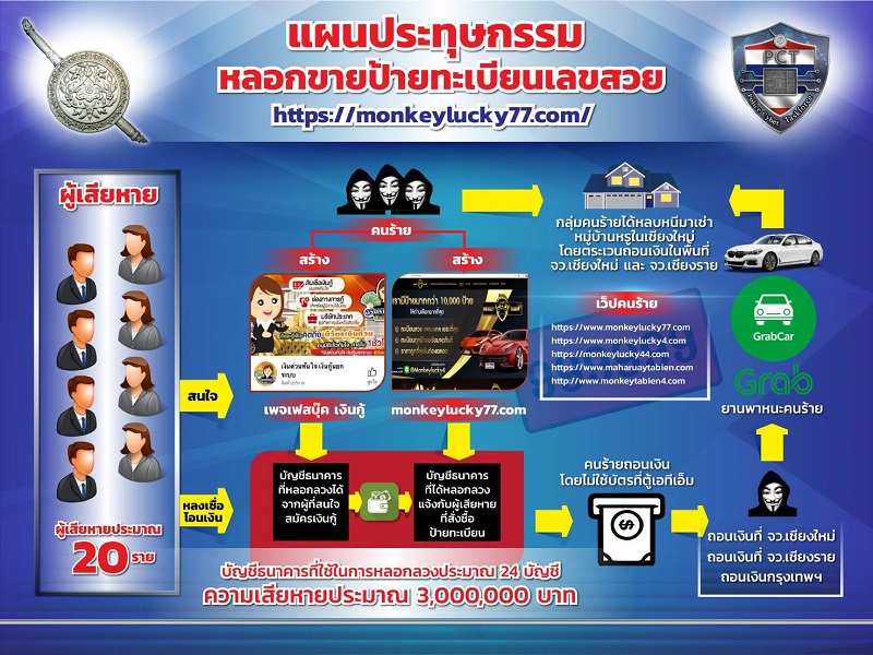 3. การดำเนินคดีหลอกขายทะเบียนรถยนต์สวย และแอปพลิเคชันกู้เงินออนไลน์ ซึ่งมีผู้เสียหายเป็นจำนวนมาก และสร้างความเสียหายเศรษฐกิจของประเทศ