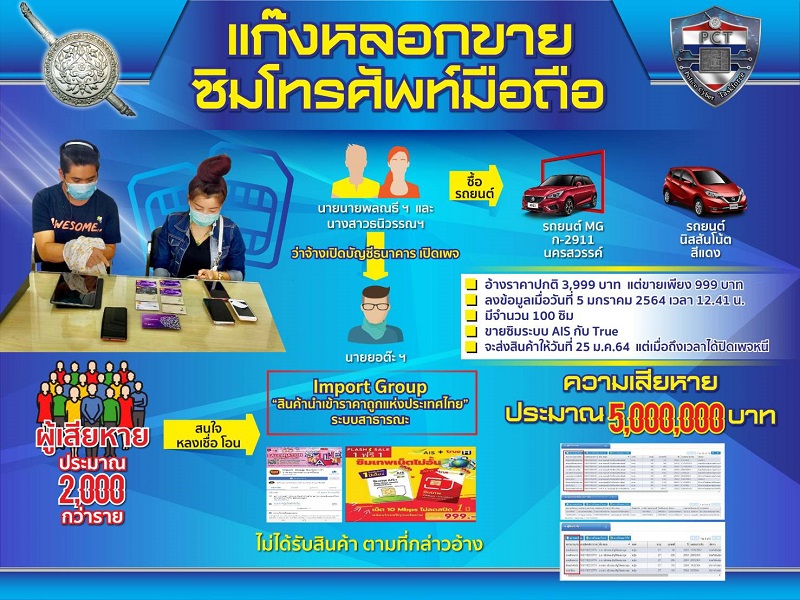 2. การดำเนินคดีหลอกขายซิมการ์ดโทรศัพท์ ซึ่งมีมูลค่าความเสียหายกว่า 10 ล้านบาท