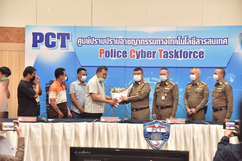 วันนี้(วันพุธที่ 24 มีนาคม 2564) เวลา 10.00 น. ณ สำนักงานตำรวจแห่งชาติ : พล.ต.อ.ดำรงศักดิ์ กิตติประภัสร์ รอง ผบ.ตร./ผอ.ศปอส.ตร., พร้อมด้วย, พล.ต.ท.ปรีชา เจริญสหายนนท์ ผู้ช่วย ผบ.ตร., พล.ต.ต.ศิริพงษ์ ติมุลา รอง ผบช.สทส.ตร., และ พล.ต.ต.ไตรรงค์ ผิวพรรณ รอง ผบช.ภ.6, ร่วมกันแถลงข่าวผลการดำเนินการปราบปรามผู้กระทำความผิดคดีฉ้อโกงหลอกลวงประชาชน, และการกระทำความผิดทางอาชญากรรมทางเทคโนโลยีของ ศปอส. (PCT) ณ ห้องศรียานนท์ โซนซี ชั้น 2 อาคาร 1 ตร.โดยมีรายละเอียด การแถลงข่าว ดังนี้
