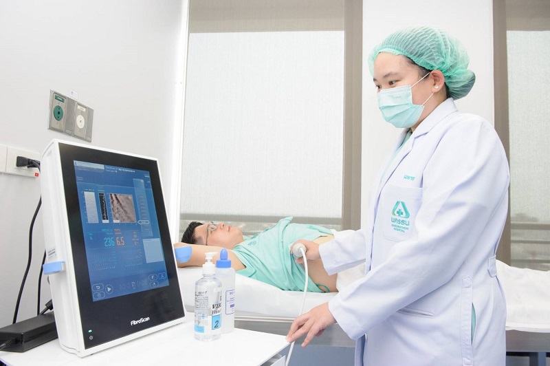 “จากเมื่อก่อนเราต้องเจาะเอาเนื้อตับมาตรวจ แต่ปัจจุบันมีเครื่องมือที่เรียกว่า ไฟโบรสแกน เป็นการตรวจโดยใช้คลื่นอัลตราซาวด์ที่มีหัวพิเศษเพื่อดูปริมาณไขมันและพังผืดในเนื้อตับโดยเฉพาะ ตรวจได้โดยไม่ต้องเจาะช่องท้อง เป็นหัวอัลตราซาวด์แตะตรงบริเวณหน้าท้อง ชายโครงด้านขวาและรู้สึกมีคลื่นผ่านผิวหนังลงไปเท่านั้น ไม่มีความเจ็บปวดและใช้เวลาตรวจเพียงครู่เดียว ก็สามารถรู้ผล ใช้เวลาตรวจเพียง 10-15 นาที สามารถทราบผลทันทีหลังการตรวจว่าระดับไขมันพอกตับหรือพังผืดเกาะตับมากน้อยขนาดไหน และนำผลการตรวจมาวินิจฉัยบวกกับประเมินความเสี่ยงคนไข้มีภาวะไขมันพอกตับ หรือภาวะพังผืดที่เข้าใกล้การเป็นตับแข็งหรือยัง”