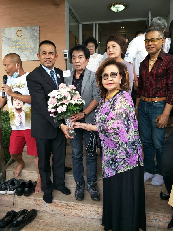 ในการนี้ นายธานินทร์ อินทรเทพ นายกสมาคมนักร้องแห่งประเทศไทยในพระราชูปถัมภ์ สมเด็จพระเทพรัตนราชสุดาฯ พร้อมด้วย ดร.นิตยา อรุณวงศ์ (โฉมฉาย อรุณฉาน) เลขาธิการสมาคมนักร้องฯ, เพ็ญแข อัครบวร เหรัญญิก, วิระ บำรุงศรี ร่วมด้วย นายเฉลียว ปรีกราน ผู้บริหารตลาดยอดพิมาน ปากคลองตลาด และเหล่าศิลปินดารา เพ็ชรทาย วงศ์คำเหลา (หม่ำ จ๊กม๊ก), ศรสุทธา กลั่นมาลี (ถั่วแระ เชิญยิ้ม) มาร่วมงานเพื่อเป็นการแสดงความยินดี