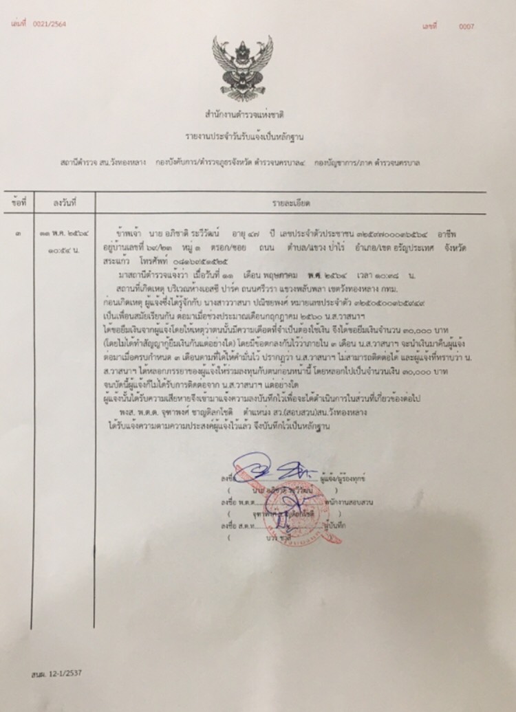 ทั้งนี้เพื่อนคนดังกล่าวจึงติดต่อมาที่ตัวเองว่า พอช่วยเหลือได้หรือไม่ ซึ่งตัวเองมองว่า เป็นเพื่อนกันมานาน และมีเพื่อนการันตีให้แบบนี้คงไม่น่ามีปัญหาอะไร ก่อนจะโอนเงินดังกล่าวไปให้ จากนั้นแค่เดือนเดียว น.ส.วาสนา ก็ได้เอ่ยปากยืมเงินเพื่อนชายคนนี้อีกครั้งละ 2,000-3,000 บาทบ้าง อ้างว่า ธุรกิจขายไข่ไม่ค่อยดี เหตุญาติทางสามีไม่ยอมเอาไข่เกรดเอมาให้ จนทุนหายกำไรหด ส่งผลให้ตัวเองเกิดความสงสัยจึงโทรศัพท์ไปเค้นหาความจริง ก่อนทุกอย่างจะมาโป๊ะแตกรู้อีกทีคือ น.ส.วาสนา ได้แอบติดต่อยืมเงินภรรยาตัวเองไปก่อนหน้านี้แล้ว 30,000 บาท ด้วยการยื่นข้อเสนอให้มาทำธุรกิจขายไข่ไก่ร่วมกัน แล้วจะแบ่งเปอร์เซ็นต์ให้ แต่สุดท้ายก็บ่ายเบี่ยงเชิดเงินหนีไป ดังนั้นตัวเองจึงขอเป็นตัวแทนเพื่อนๆออกมาแจ้งความในครั้งนี้
