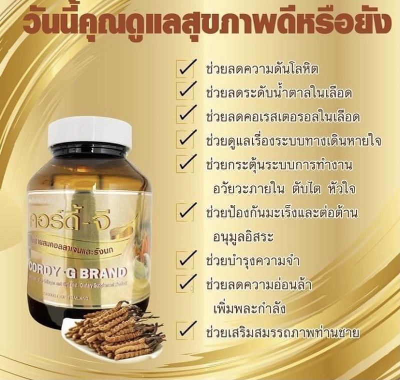 เลยหันมาศึกษา อย่างจริงจัง และเริ่มสั่งมาทาน เผื่อเพื่อนๆ. และคนที่เรารักคุณสมบัติของ คอร์ดี้ จี แบรนด์ Cordy G Brand คือ CORDY – G BRAND(*) ราชินีสุขภาพรวมไว้ในหนึ่งเดียว ถั่งเช่าผสมคอลลาเจนและรังนก