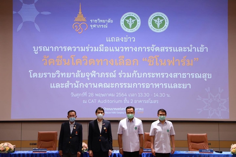 28 พฤษภาคม 2564: ราชวิทยาลัยจุฬาภรณ์ กระทรวงสาธารณสุข แอ่านเพิ่มเติม “ราชวิทยาลัยจุฬาภรณ์ กระทรวงสาธารณสุข และ อย. ผสานความร่วมมือนำเข้าวัคซีนโควิดทางเลือก “ซิโนฟาร์ม””