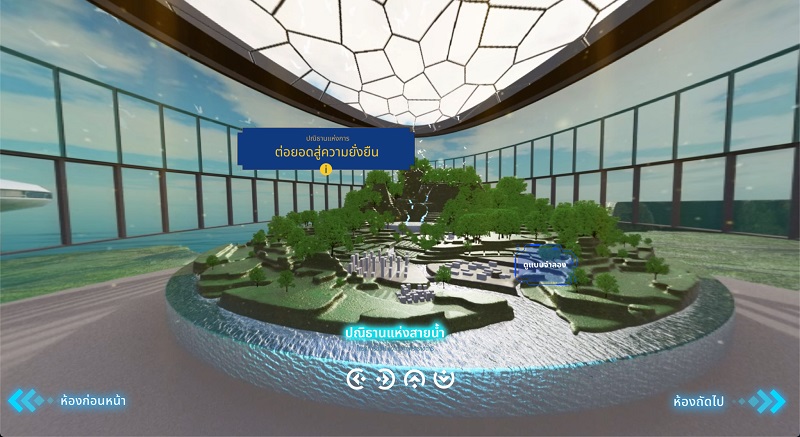 โซนที่ 1 : ปณิธานแห่งสายน้ำ โครงการอันเนื่องมาจากพระราชดำริ นำเสนอโครงการพัฒนาแหล่งน้ำอันเนื่องมาจากพระราชดำริ ผ่านโมเดลจำลอง 3 มิติ,