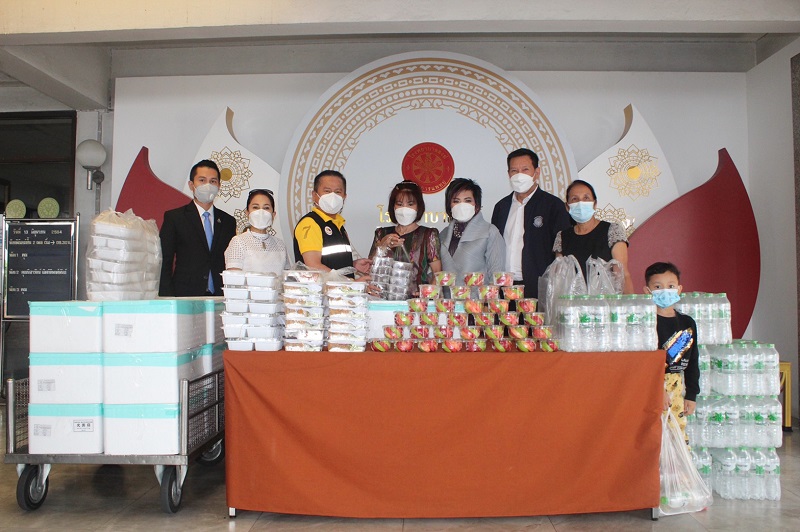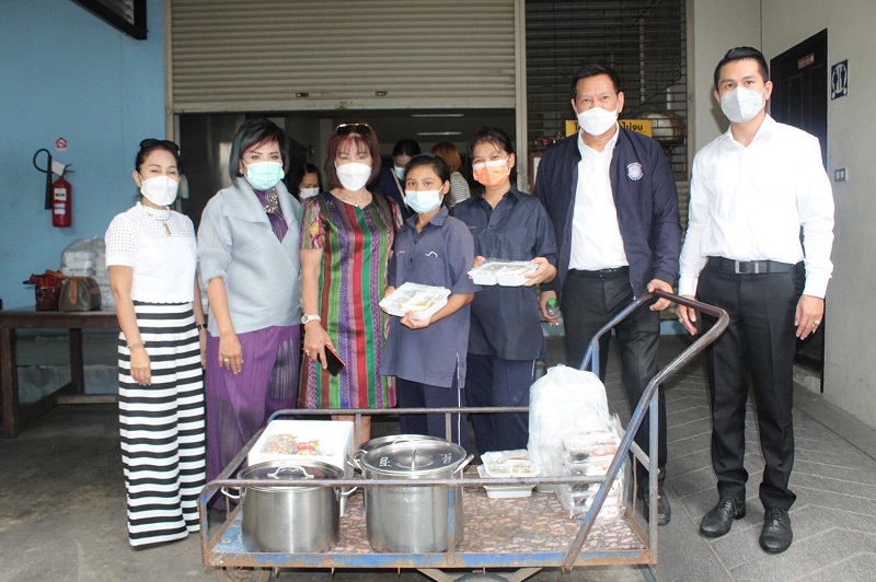 และต่อมาเวลา 12.00 น. ทางคณะร่วมกันนำอาหารและน้ำดื่มดังกล่าวบริจาคให้แก่สถานสงเคราะห์เด็กหญิงบ้านราชวิถี จำนวน 13 บ้าน เพื่อช่วยเหลือและให้กำลังใจเด็กหญิงและเจ้าหน้าที่ เนื่องในสถานการณ์ปัญหาโรคระบาดเชื้อไวรัสโควิด-19 ณ โรงอาหาร สถานสงเคราะห์เด็กหญิงบ้านราชวิถี กรุงเทพฯ