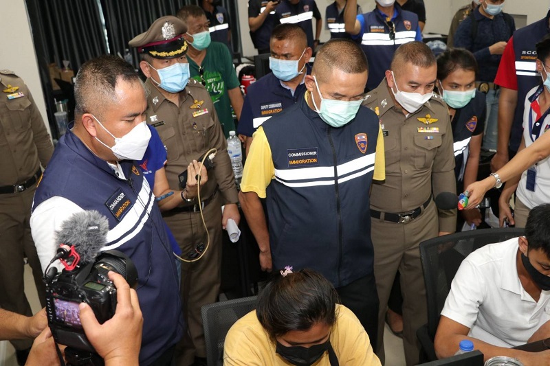 สํานักงานตรวจคนเข้าเมือง โดย พล.ต.ท.สมพงษ์ ชิงดวง ผบช.สตม., พล.ต.ต.ณฐพล แสวงกิจ รอง ผบช.สตม., พล.ต.ต.สิทธิชัย โล่กันภัย รอง ผบช.สตม., พล.ต.ต.อาชยน ไกรทอง รอง ผบช.สตม., พล.ต.ต.ศิลปคมณ์ เอี่ยมวงศ์ รอง ผบช.สตม., พล.ต.ต.พันธนะ นุชนารถ ผบก.สส.สตม., พ.ต.อ.สถิตย์ พรมอุทัย รอง ผบก.สส.สตม. และ พ.ต.อ.ณภัทรพงศ สุภาพร ผกก.ปอพ.บก.สส.สตม. โดยมอบหมายให้พ.ต.อ.ชย พานะกิจ ผกก.(สอบสวน) กลุ่มงานสอบสวน บก.สส.สตม. พร้อมกำลังเจ้าหน้าที่ตำรวจชุดสืบสวน กก.ปอพ.บก.สส.สตม. และ ศปชก.สตม. ร่วมกันจับกุม ผู้ต้องหา จํานวน 2 ราย ข้อหา “ร่วมกันประกอบกิจการทวงถามหนี้โดยไม่ได้รับอนุญาต”