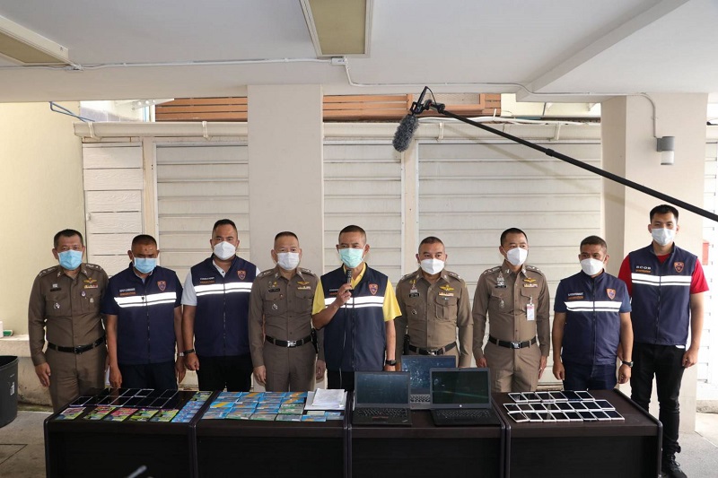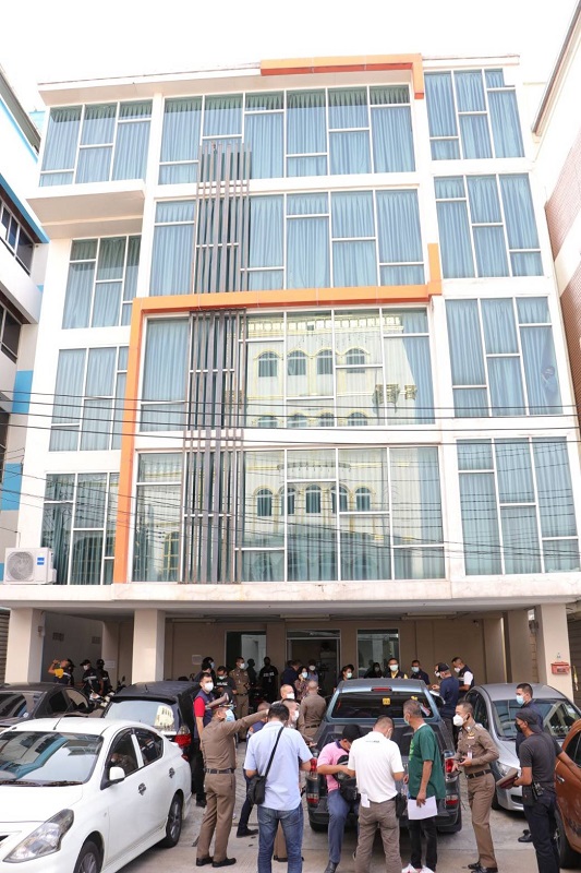 ตามหมายจับ ศาลอาญา กรุงเทพใต้ ที่ จ 299/2564 ข้อหา ร่วมกันประกอบกิจการทวงหนี้ โดยไม่ได้รับอนุญาต จากการตรวจค้นพบ คอมพิวเตอร์/โน้ตบุ๊ก , โทรศัพท์ อย่างละประมาณกว่า 100 เครื่อง ซึ่งภายในอาคารดังกล่าว มีกลุ่มบุคคลซึ่งยอมรับว่าเป็นพนักงานโทรทวงหนี้ รวมจำนวน 66 คน (บริเวณชั้นสอง จำนวน 16 คน , ชั้นสาม จำนวน 27 คน และชั้นสี่จำนวน 23 คน)