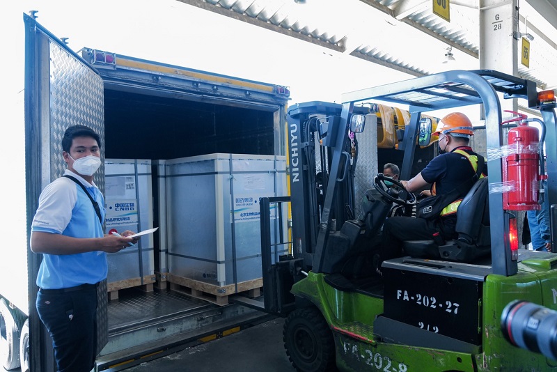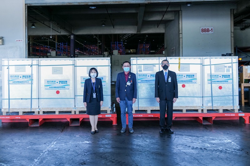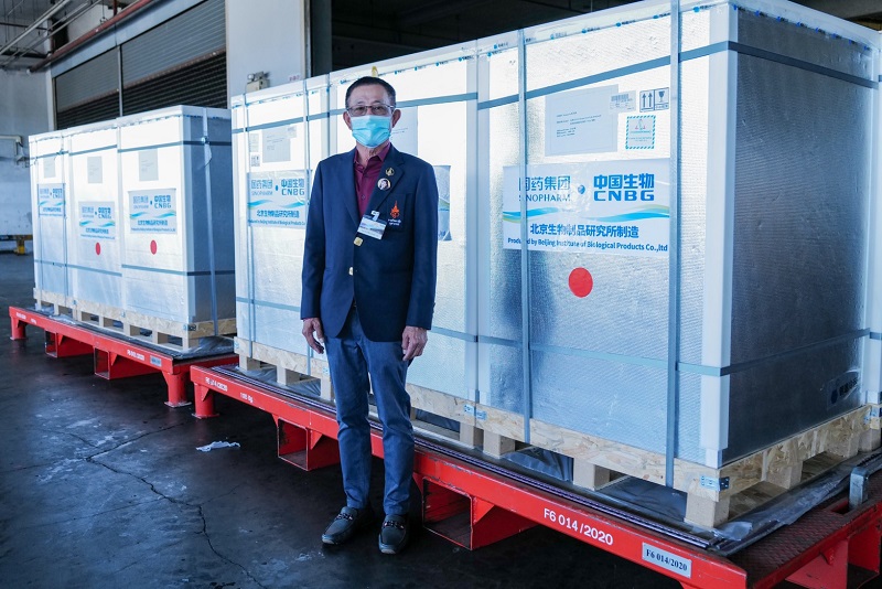 ซึ่งวัคซีนถูกขนส่งโดยเที่ยวบินขนส่งสินค้า TG8669 เที่ยวที่ 1 จำนวน 5 แสนโดส ออกจากเมืองปักกิ่ง สาธารณรัฐประชาชนจีน เวลา 5.30 น. (เวลาท้องถิ่น) เดินทางถึงประเทศไทย เวลา 9.03 น. และ