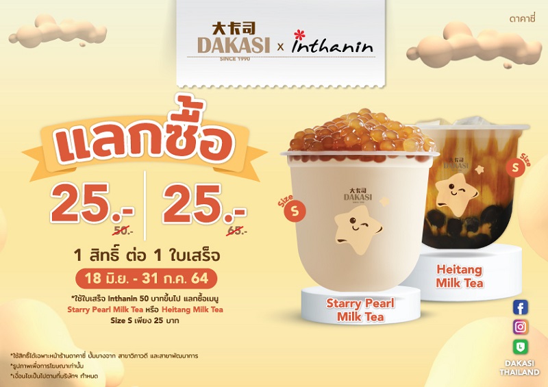 “และเพื่อเป็นการตอกย้ำ การก้าวสู่ตลาดชานมไข่มุกของ บางจาก รีเทล เราจึงได้จัดรายการส่งเสริมการขายพิเศษ INTHANIN x DAKASI ฉลองเปิดสาขาใหม่ โดยใบเสร็จร้านอินทนิล 50 บาทขึ้นไป จากทุกสาขาทั่วประเทศ สามารถนำไปใช้รับสิทธิซื้อชานมไข่มุก DAKASI ได้ในราคาเพียง 25 บาท ที่สาขาพัฒนาการและสาขาวิภาวดี ตั้งแต่ 18 มิถุนายน – 31 กรกฎาคม 2564” นายเสรีกล่าวปิดท้าย