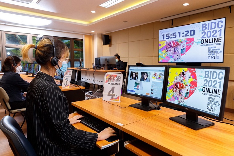การเจรจาการค้าออนไลน์ในงาน BIDC 2021 ระหว่างผู้ประกอบการไทย ซึ่งเป็นผู้ประกอบการในธุรกิจดิจิทัลคอนเทนท์ 4 ประเภท ได้แก่ ด้านแอนิเมชั่น เกม คาแรคเตอร์ และอีเลิร์นนิ่ง กับผู้ประกอบการต่างชาติ 36 บริษัท จาก 11 ประเทศ ได้แก่ ญี่ปุ่น มาเลเซีย โปแลนด์ อินโดนีเซีย เกาหลีใต้ ไต้หวัน เวียดนาม จีน ฝรั่งเศส อินเดีย และสิงคโปร์ สร้างมูลค่าการเจรจาการค้าทั้งสิ้น 630 ล้านบาท แบ่งเป็นแอนิเมชั่น 402.5 ล้านบาท เกม 133 ล้านบาท อีเลิร์นนิ่ง 48 ล้านบาท และคาแรคเตอร์ 46.5 ล้านบาท โดยประเภทของการบริการที่ได้รับความสนใจสูงสุด ได้แก่ Animation Turn Key Service, Animation Co-production และ Game Development
